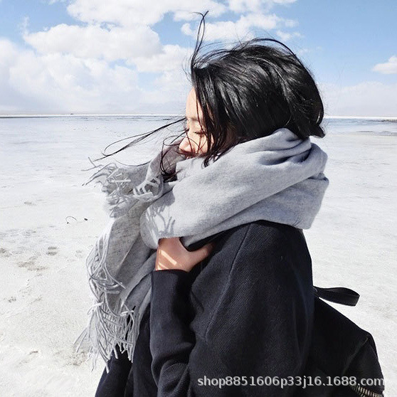 스카프 여성용 겨울 한국 스타일 모든 매치 여성용 숄 이중 사용 레드 롱 솔리드 컬러 스카프 따뜻한 두꺼운 망토 도매