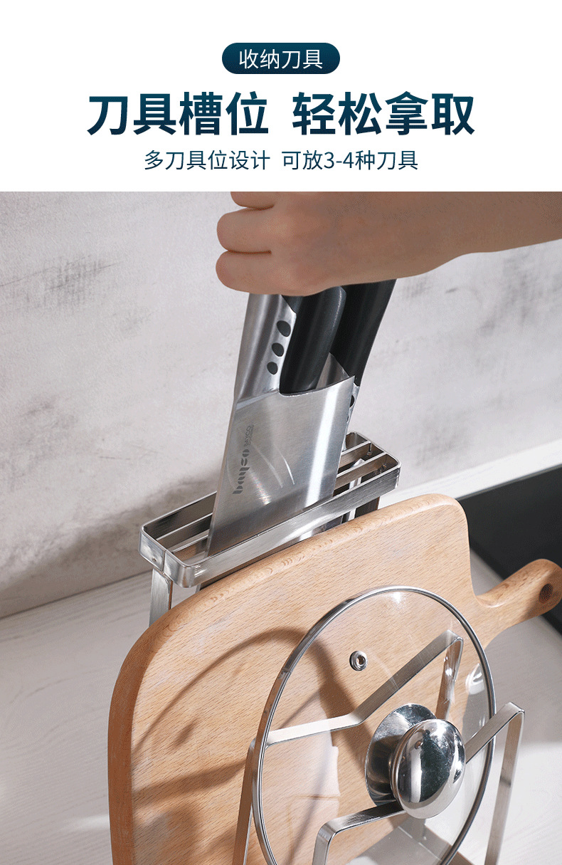 스테인레스 스틸 냄비 커버 랙 주방 나이프 랙 스토리지 랙 플랫 스트립 나이프 보드 랙 도마 보관 랙 커터 랙 도마 랙스토어 가기