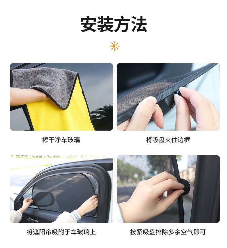 【使用说明】:用自带吸盘安装到侧挡上,吸附到侧窗即可完成安装