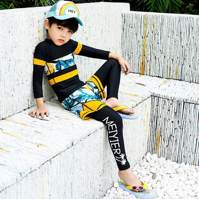 2020 어린이 수영복 빅 키즈 속건 스플릿 선 스크린 수영복 소년과 소녀를위한 긴팔 바지 방수 어머니 다이빙 세트