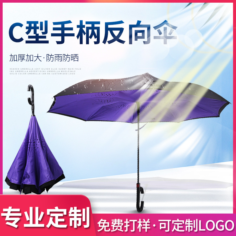 C형 손잡이 자동차 역방향 우산 이중층 자외선 차단 블랙 글로시 광고 우산 선물 제조업체 도매 자외선 차단 우산스토어 가기