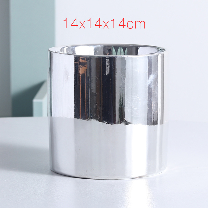 전기도금된 금색 세라믹 화분 세트, 심플하고 창의적인 북유럽 스타일 다육식물용 다채로운 원형 수경재배 화분 세라믹