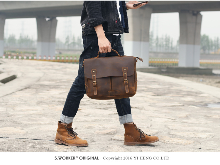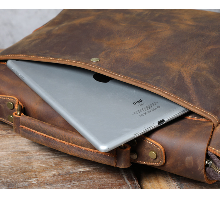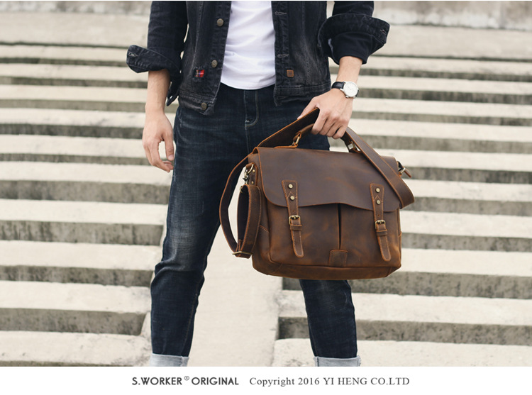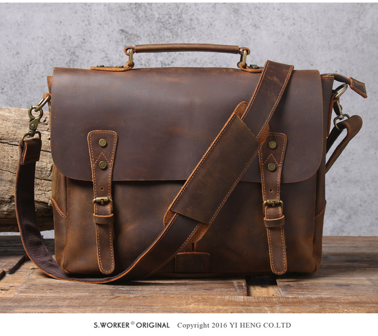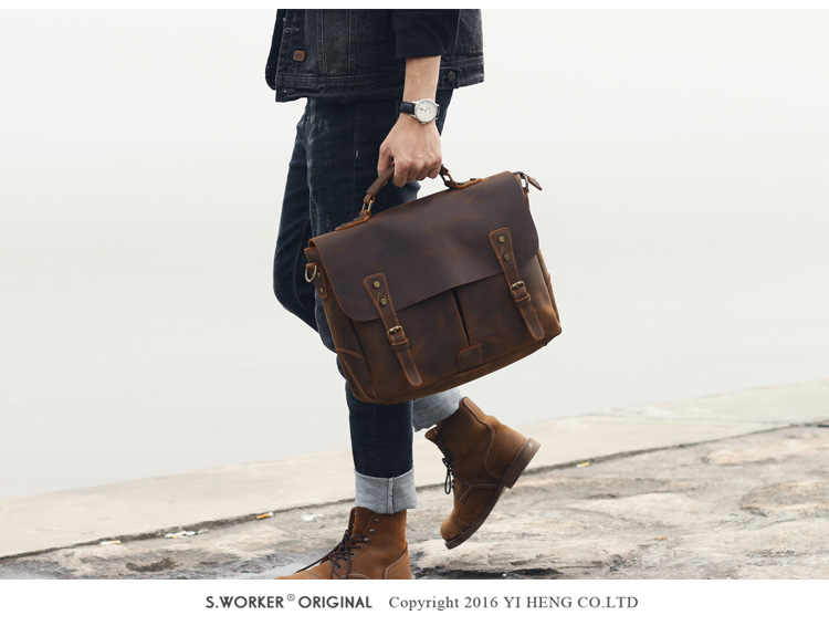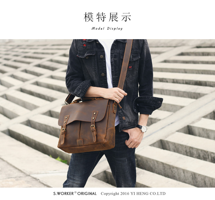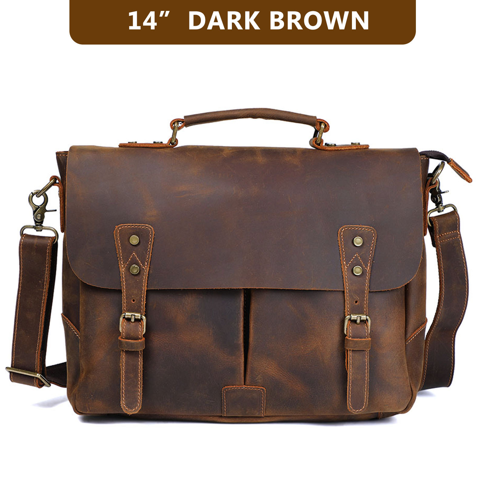 빈티지 미친 말 가죽 메시지 가방 탑 레이어 소가죽 남성용 휴대용 서류 가방 정품 가죽 싱글 숄더 14 인치 컴퓨터 가방 대외 무역스토어 가기
