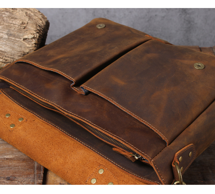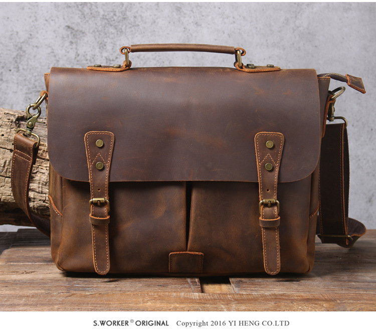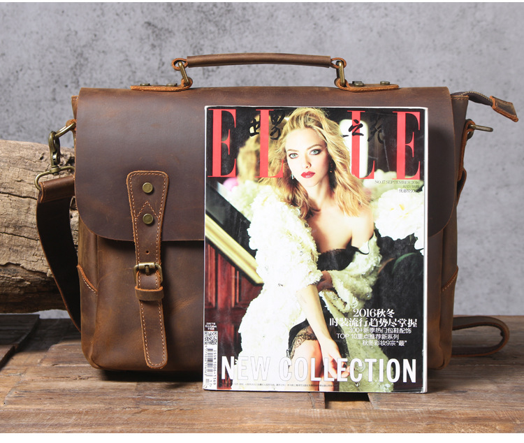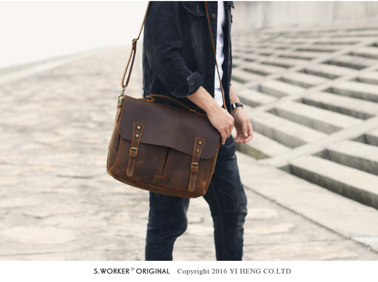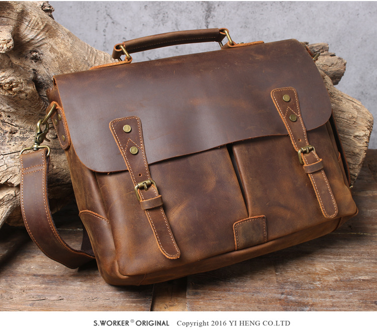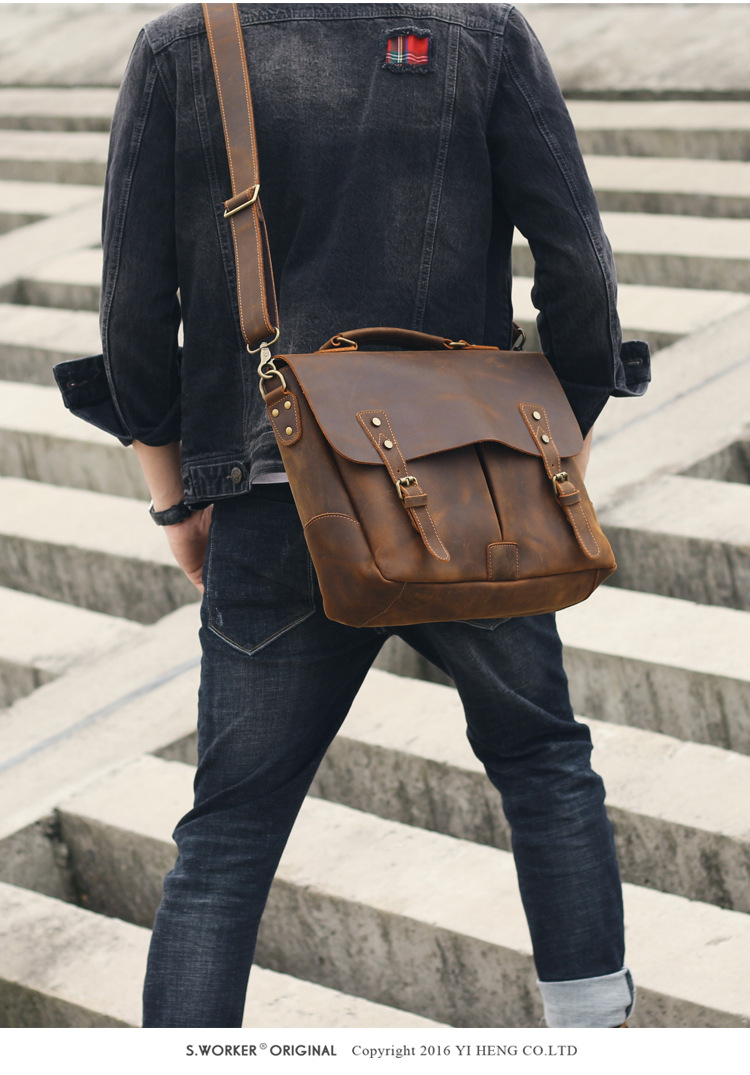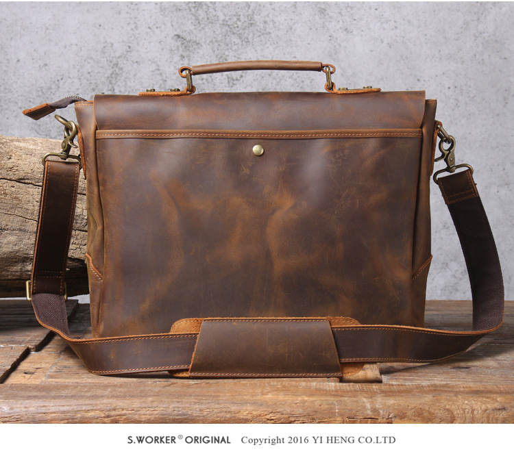빈티지 미친 말 가죽 메시지 가방 탑 레이어 소가죽 남성용 휴대용 서류 가방 정품 가죽 싱글 숄더 14 인치 컴퓨터 가방 대외 무역스토어 가기