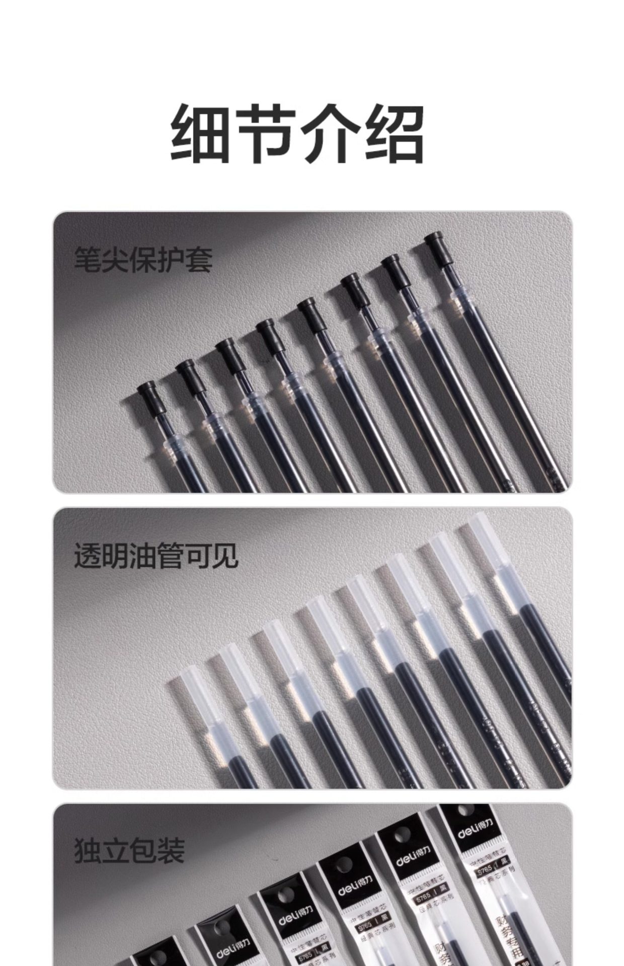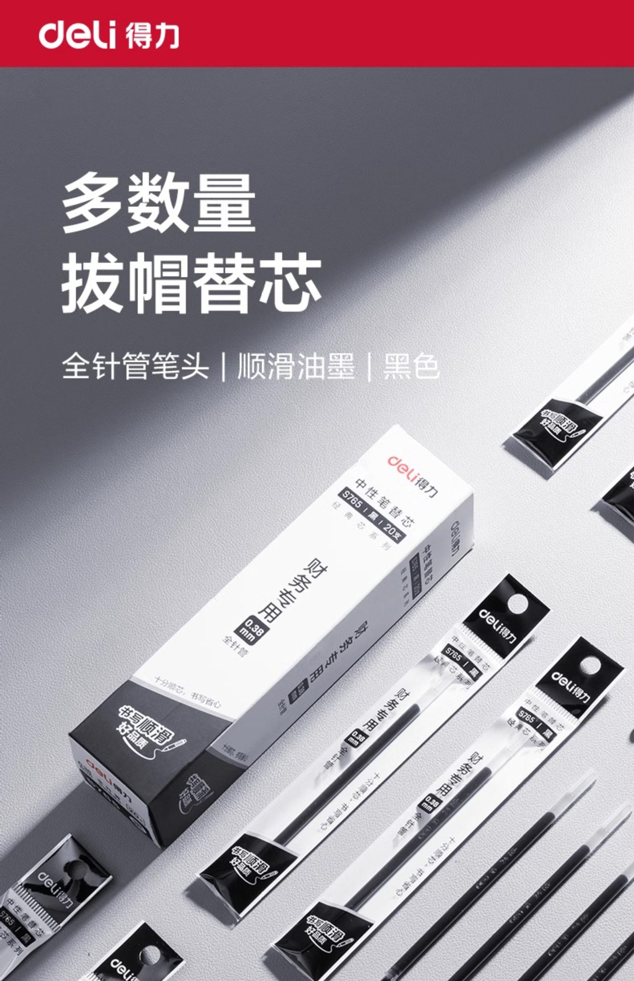 델리 S765 풀 니들 펜슬 젤 펜 블랙 리필 0.38mm 사무용 학생 물 리필