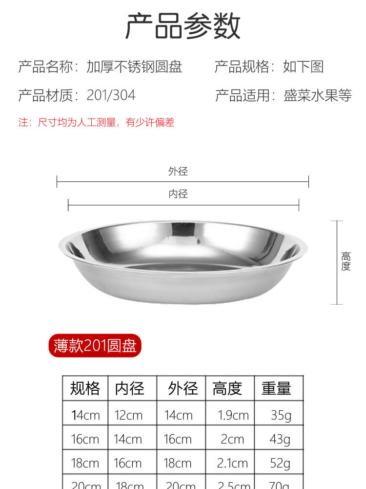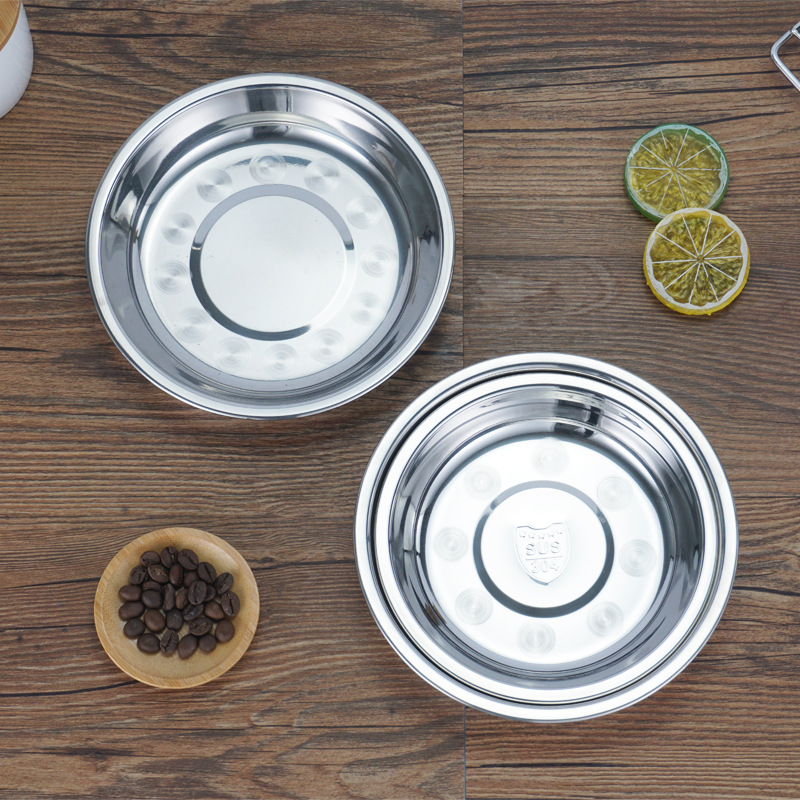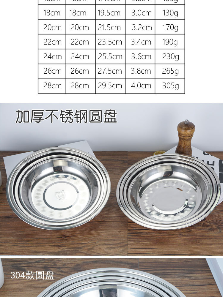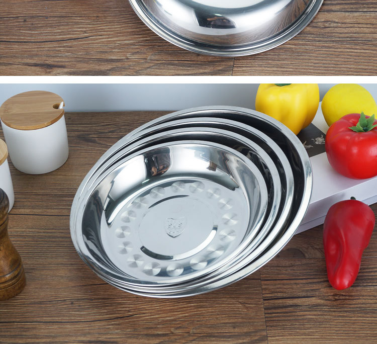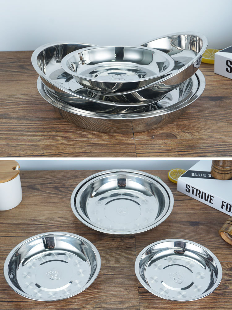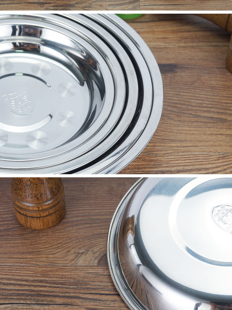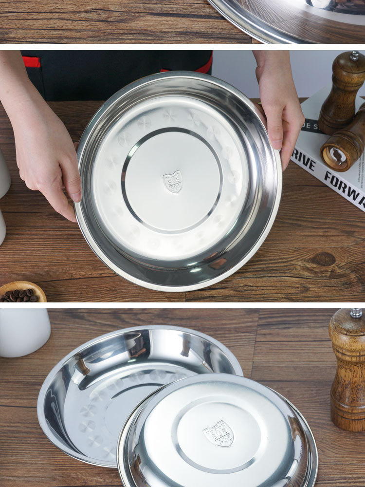厂家直供304不锈钢圆盘 加厚加深不锈钢果盘家用食堂餐厅多用圆盘