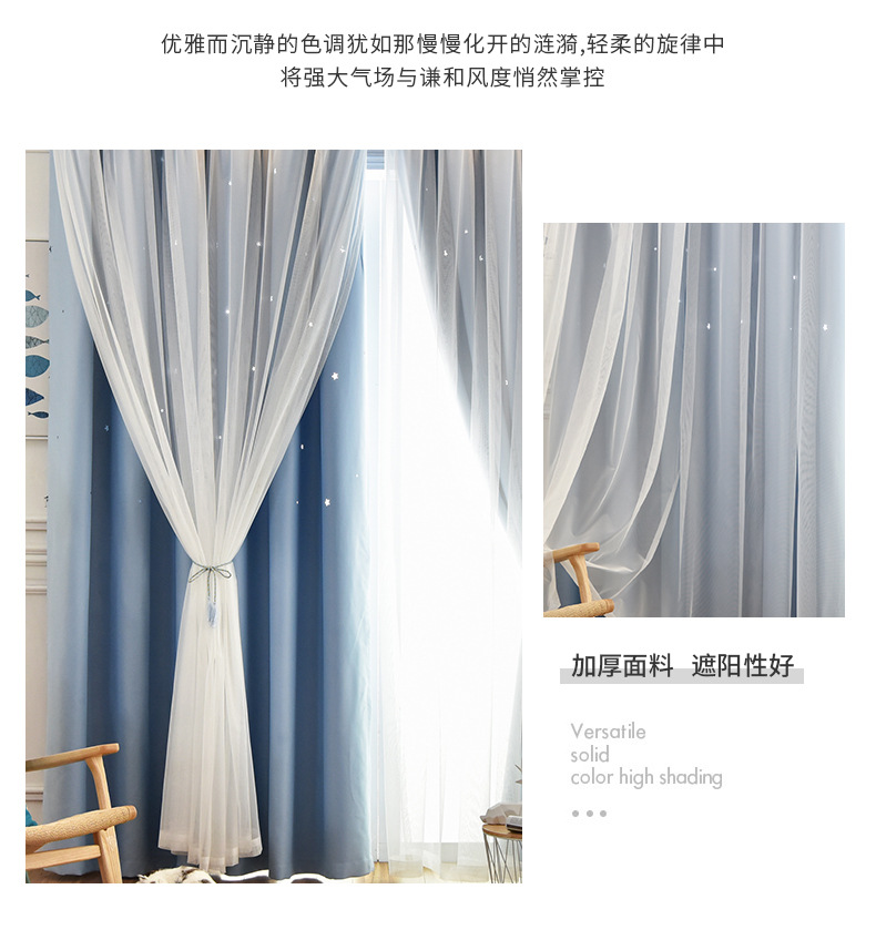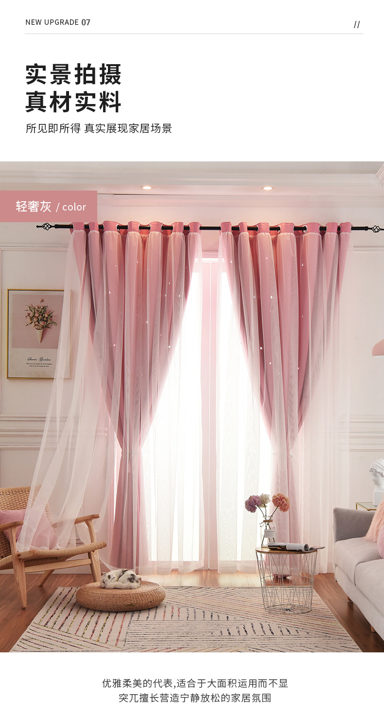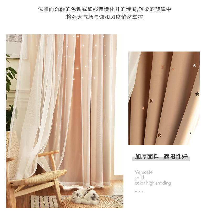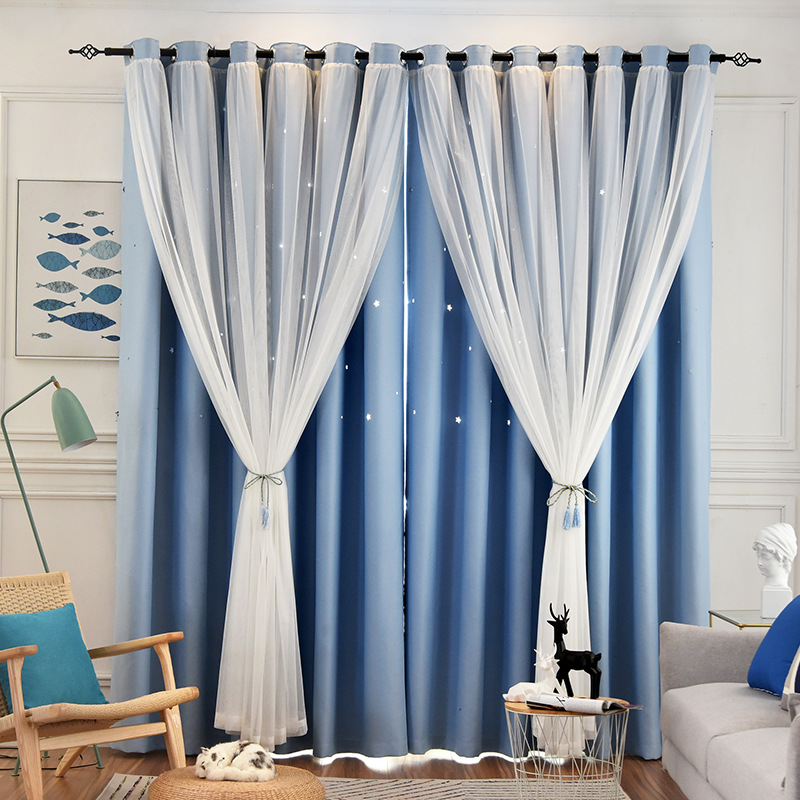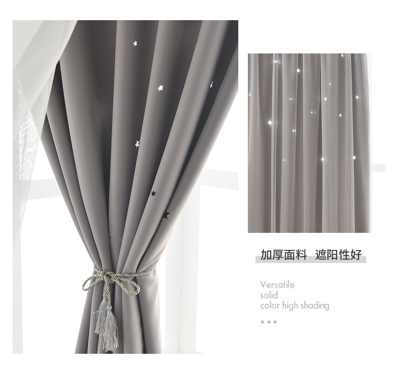 인터넷 연예인 중공 별 차양 커튼 직물 도매 현대 간단한 더블 레이어 고정밀 침실 커튼 완성 된 거실