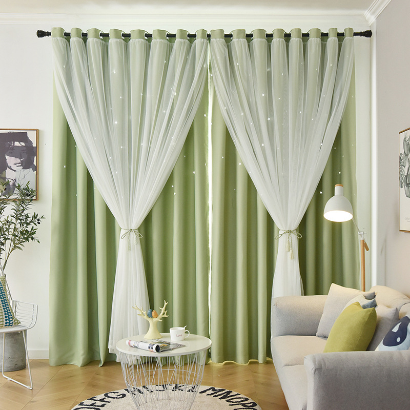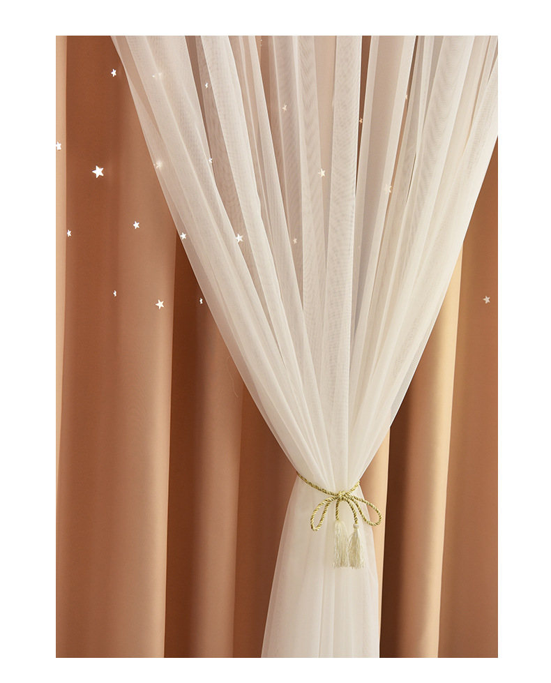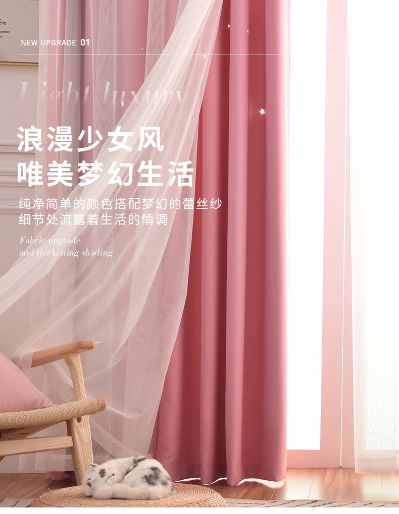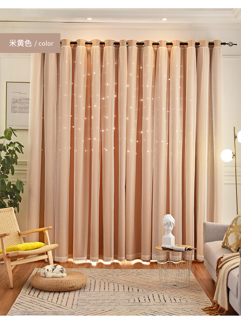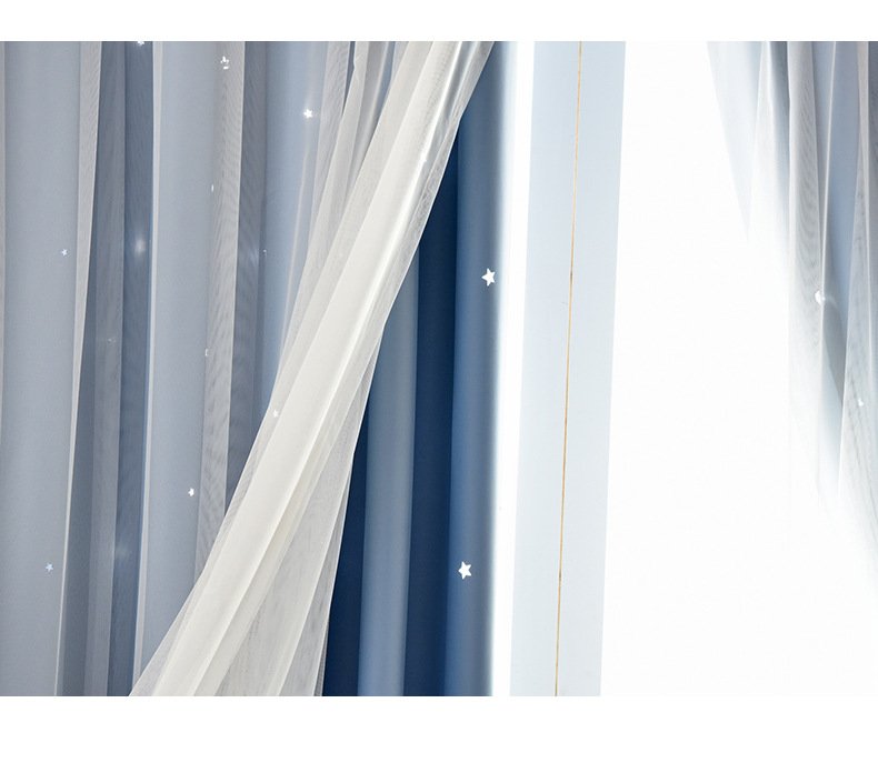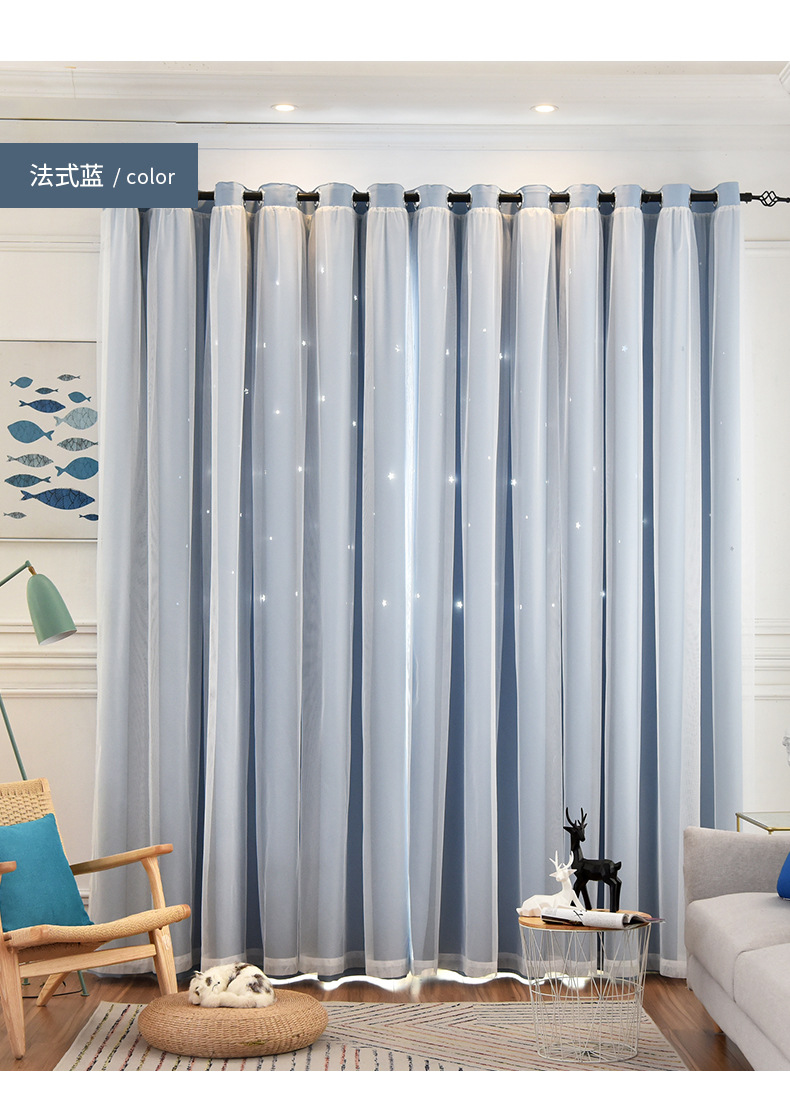 인터넷 연예인 중공 별 차양 커튼 직물 도매 현대 간단한 더블 레이어 고정밀 침실 커튼 완성 된 거실