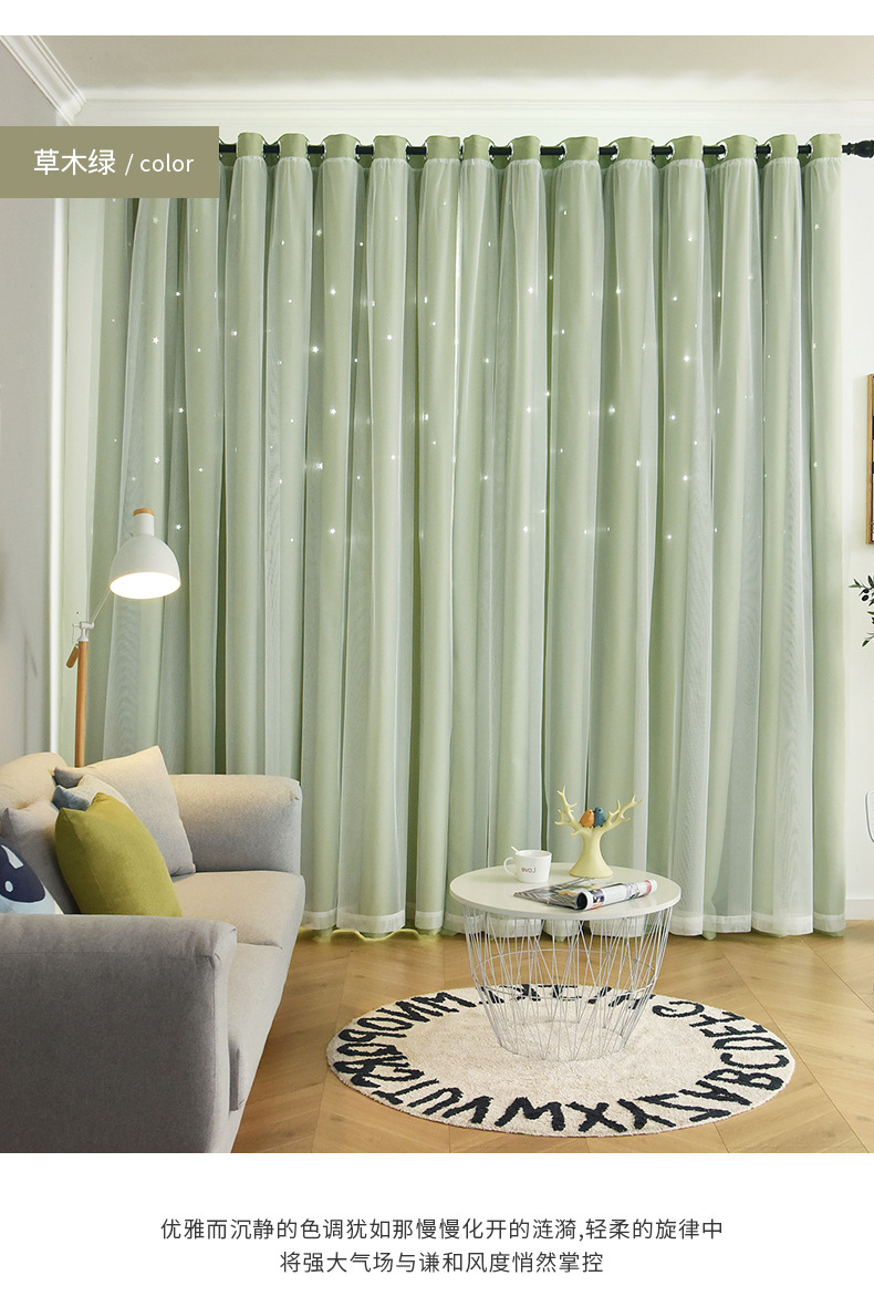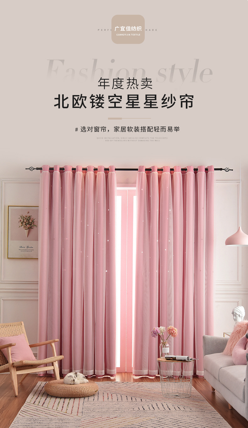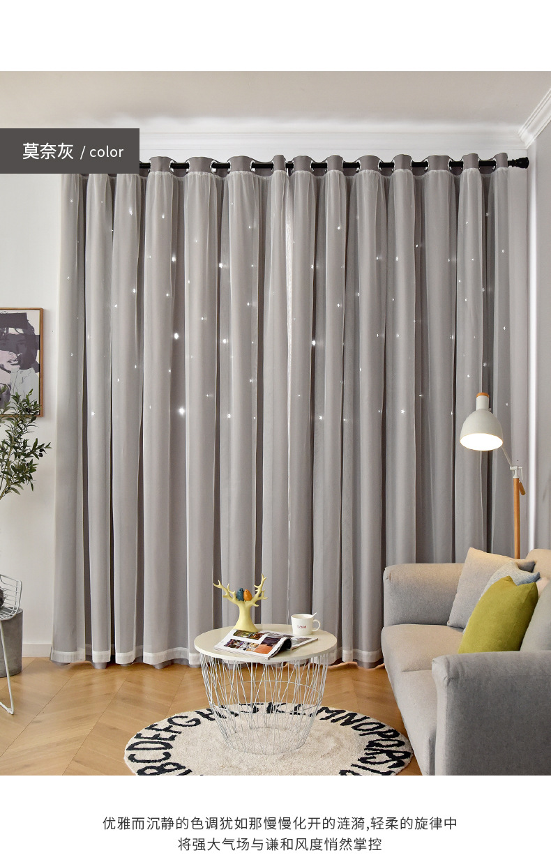 인터넷 연예인 중공 별 차양 커튼 직물 도매 현대 간단한 더블 레이어 고정밀 침실 커튼 완성 된 거실스토어 가기