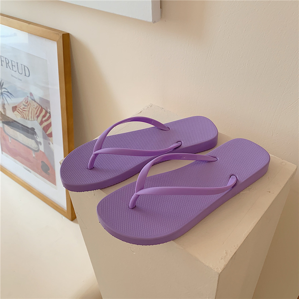 2025 여름 새로운 한국어 스타일 플랫 슬리퍼 여성 트렌드 커플 간단한 솔리드 컬러 플립 플롭 비치 슬리퍼 여름