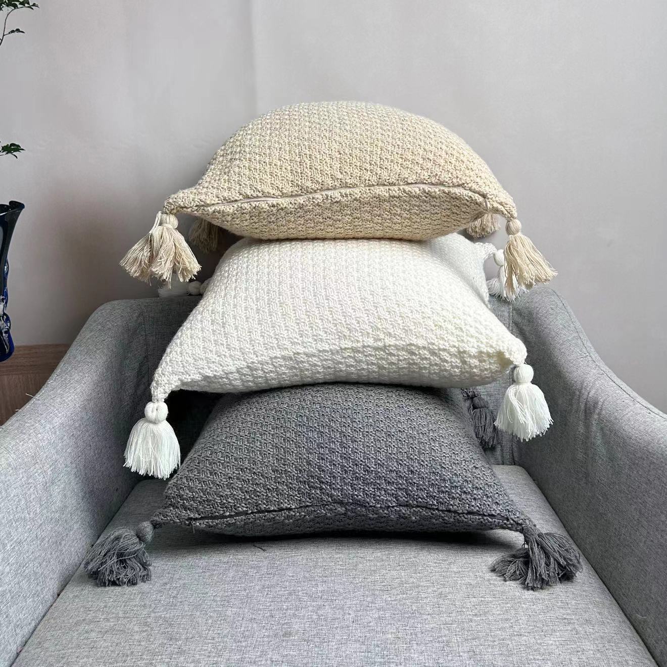 에 노르딕 스타일 소파 담요 사무실 낮잠 담요 술 니트 볼 울 레저 에어컨 담요