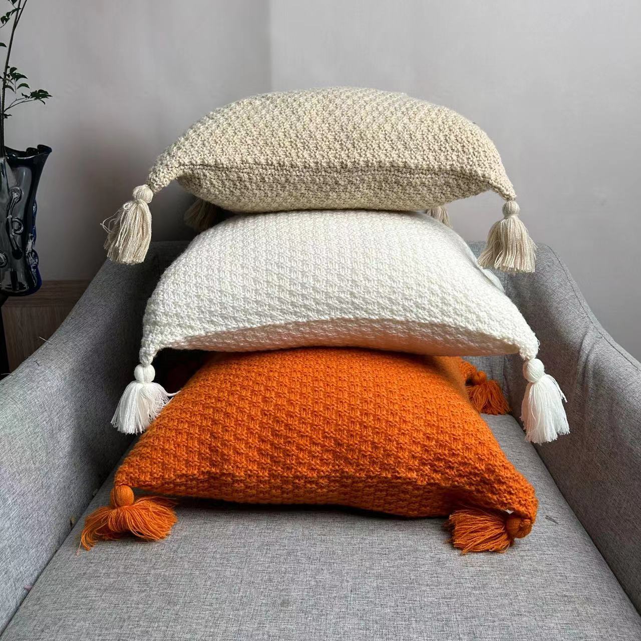 에 노르딕 스타일 소파 담요 사무실 낮잠 담요 술 니트 볼 울 레저 에어컨 담요스토어 가기