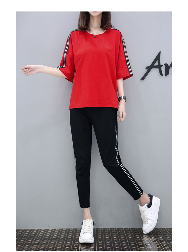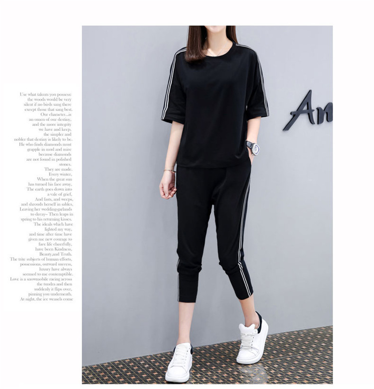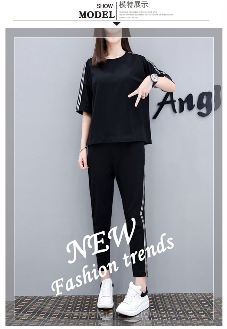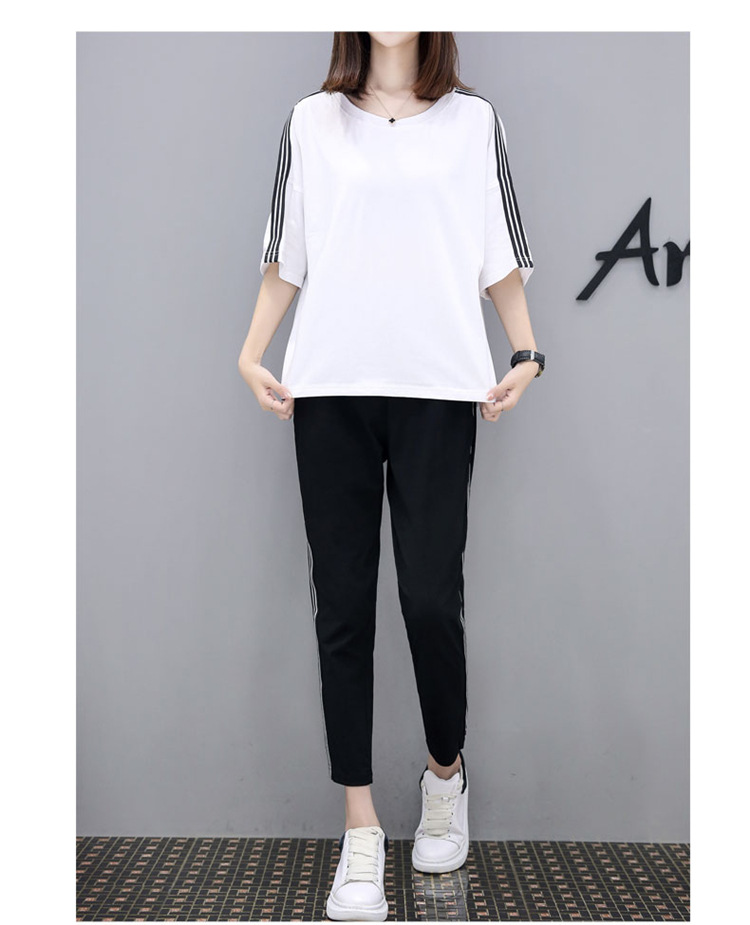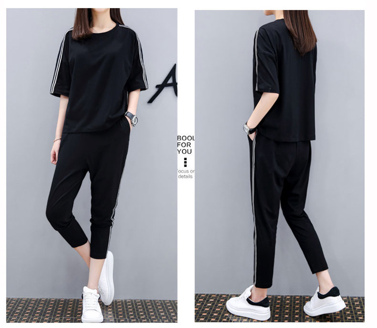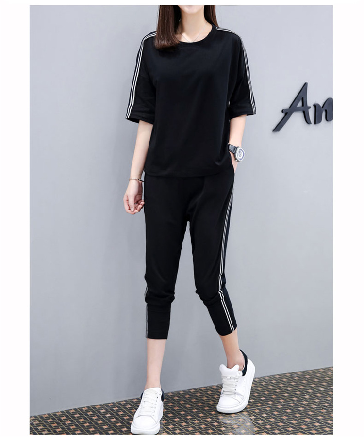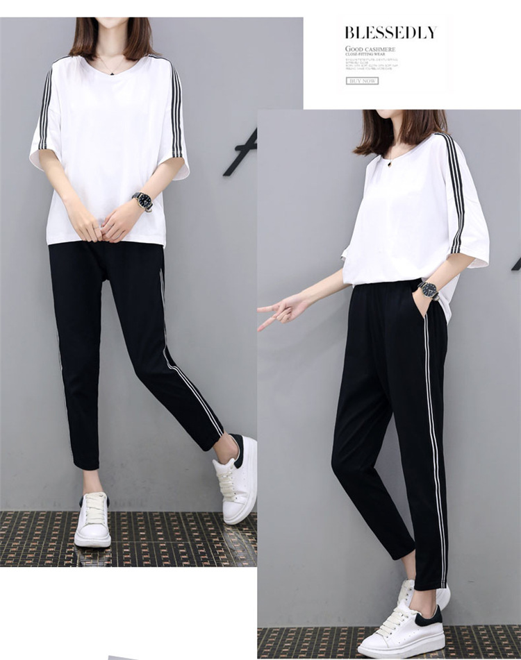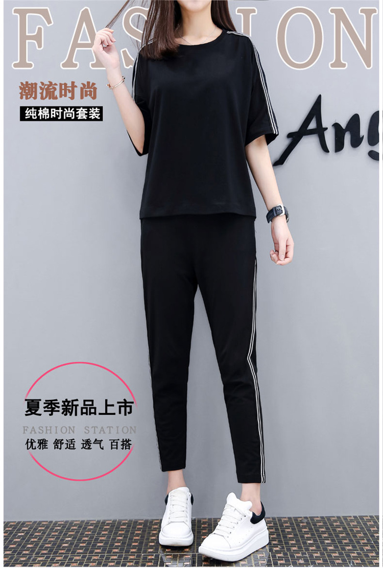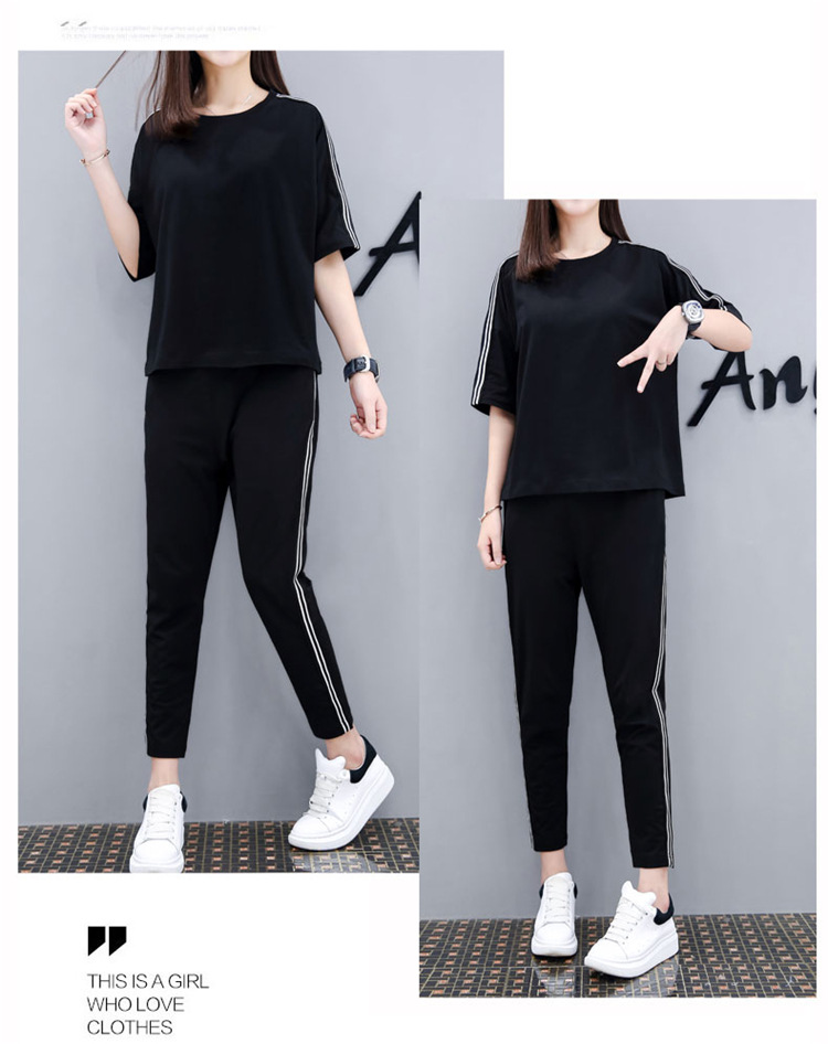 스포츠 세트 여름 패션 한국 스타일 루즈한 캐주얼 티셔츠 슬리밍 할란 팬츠 투피스 세트 여성 학생 올매치 트렌디스토어 가기