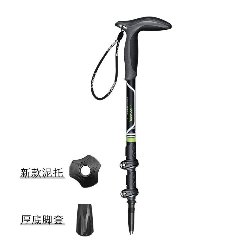 트레일 블레이저 탄소 섬유 외부 잠금 T 핸들 곡선 핸들 등반 스틱 목발 야외 하이킹 투어