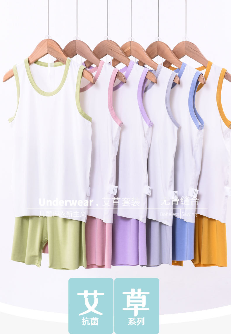 클리어런스 세일: 쑥 모달 잠옷 조끼 반바지 세트 여름 아동 여아 여름옷 남아 얇은 홈웨어스토어 가기