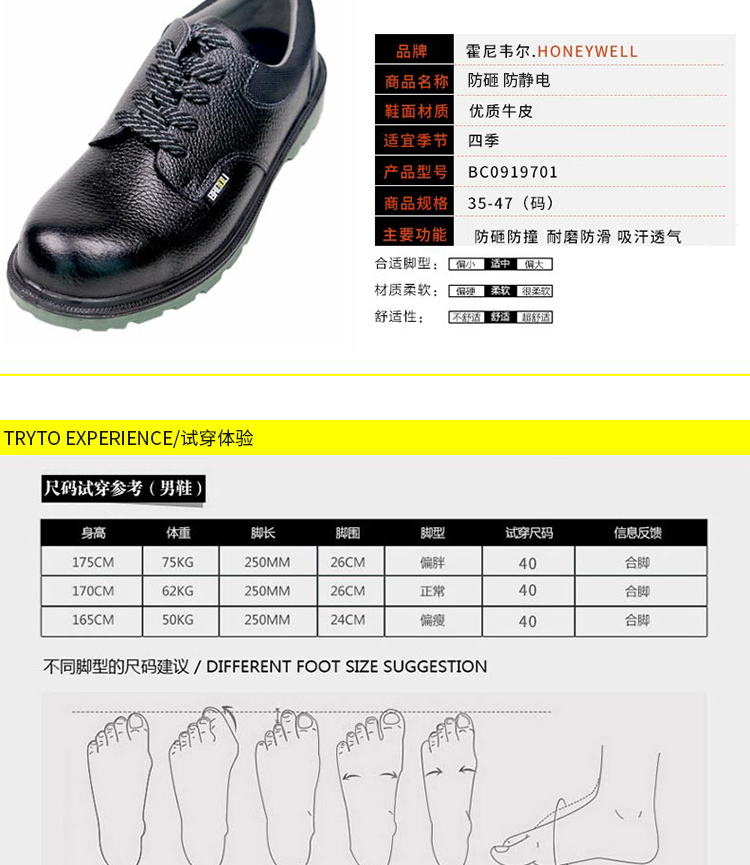 허니웰 안전화 9701 안전화 안티 스매싱 안티 펑크 절연 이중 밀도 Pu 하단 탑 레이어 소가죽 로우탑스토어 가기