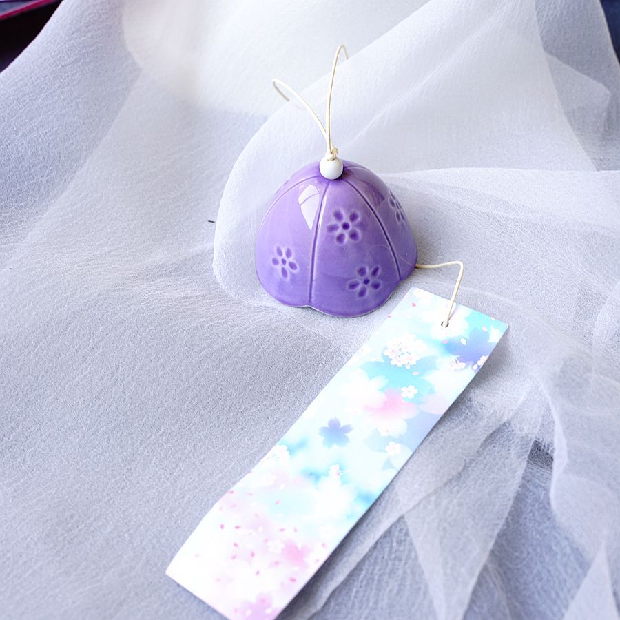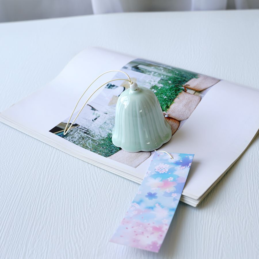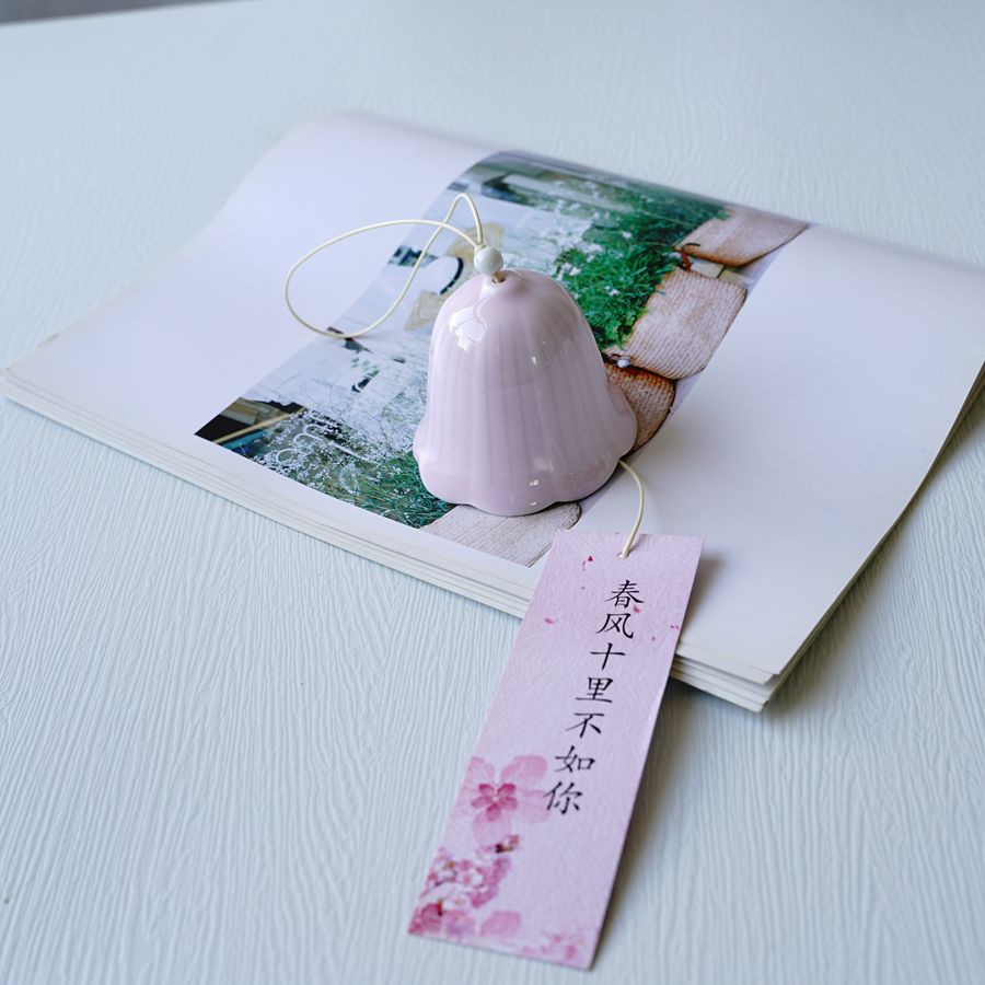 风铃总尺寸:28cm 陶瓷尺寸:铃兰花7x8.5cm 樱花6x6cm 卡纸片尺寸:4*13cm