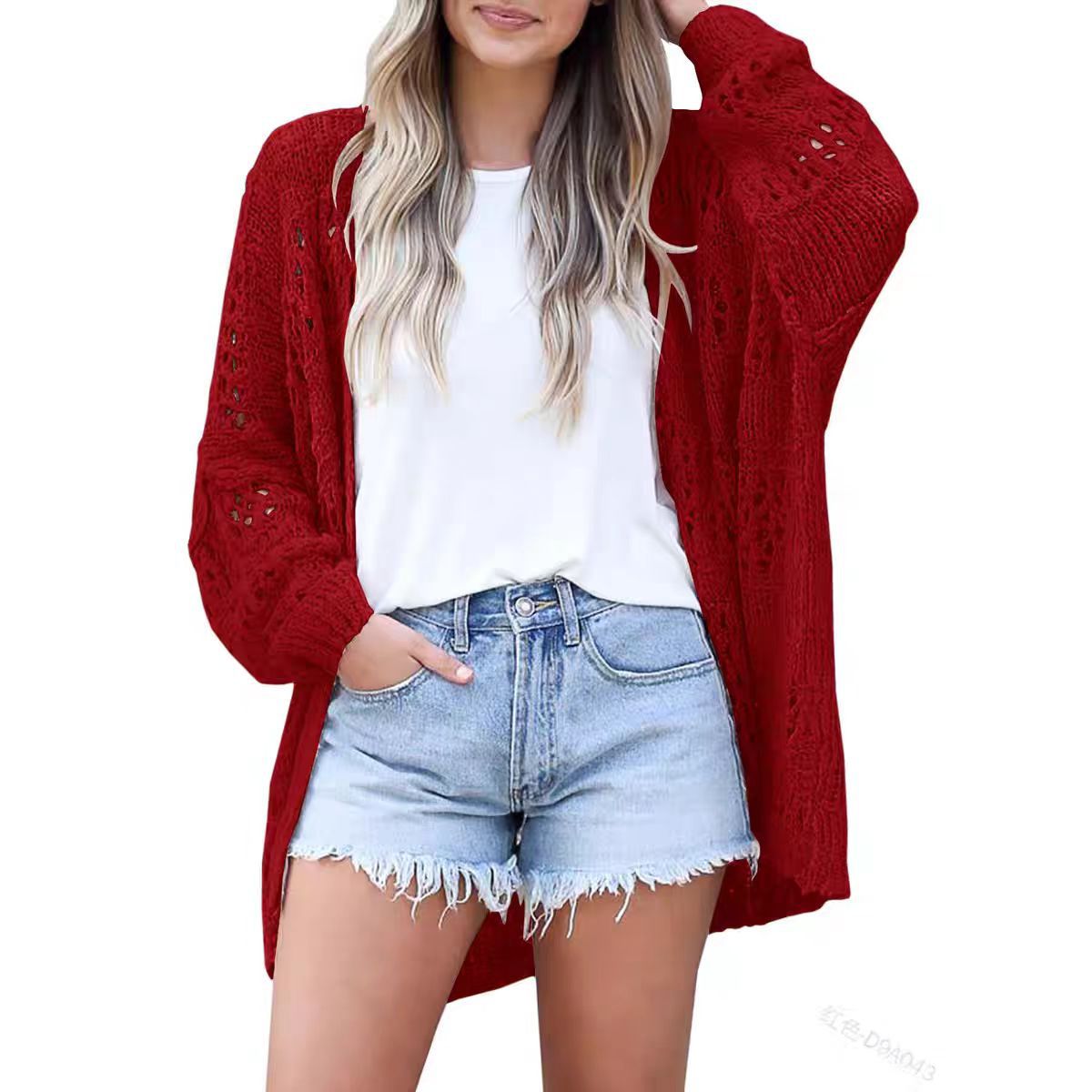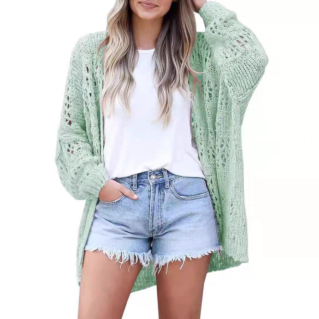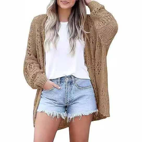 Amazon 2025 봄과 가을 새로운 대외 무역 유럽과 미국 패션 여성 카디건 긴팔 중공 모헤어 스웨터 겉옷스토어 가기