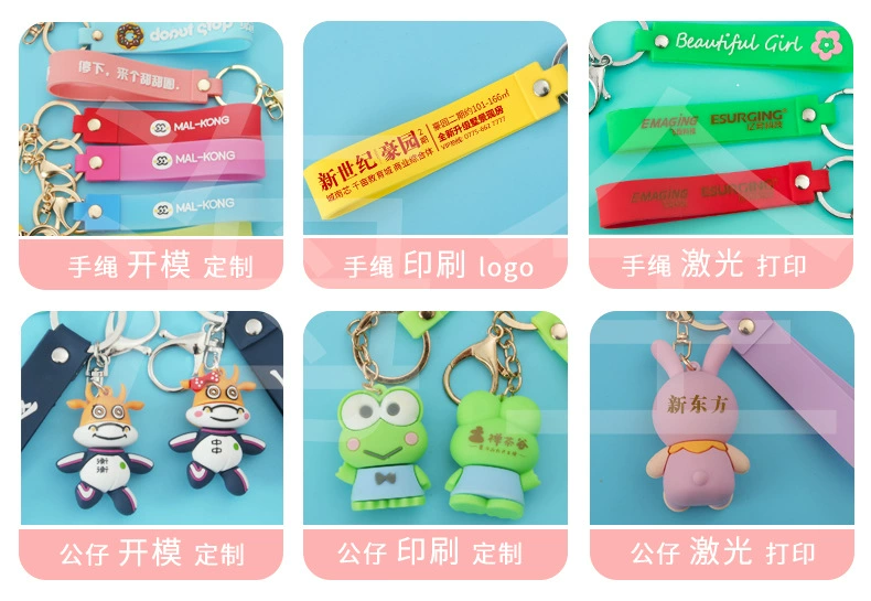 Pvc 부드러운 고무 긴 키 체인 만화 손목 끈 키 펜던트 인쇄 로고 광고 선물 도매