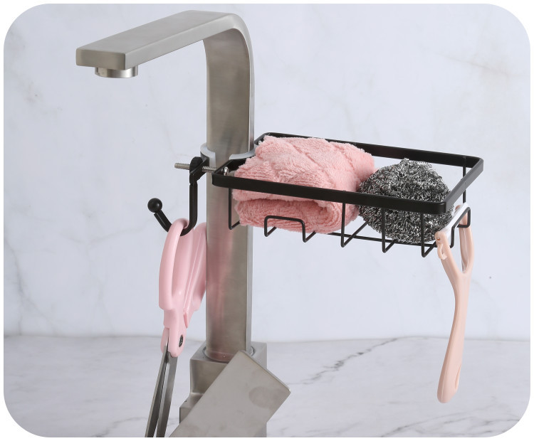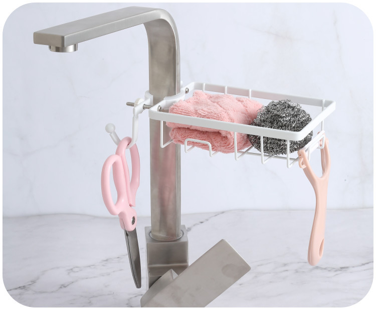 플랫 수도꼭지 보관 랙 사각 튜브 주방 싱크 보관 랙 스폰지 천 배수 펀치 프리 싱크 랙