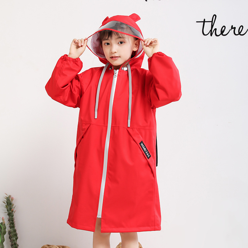 雨衣双层设计,外层防水,内层透气,面料柔软厚实,是一件比较有档次的儿童雨衣。