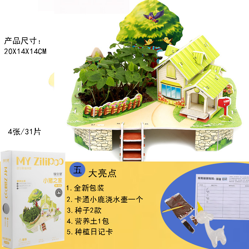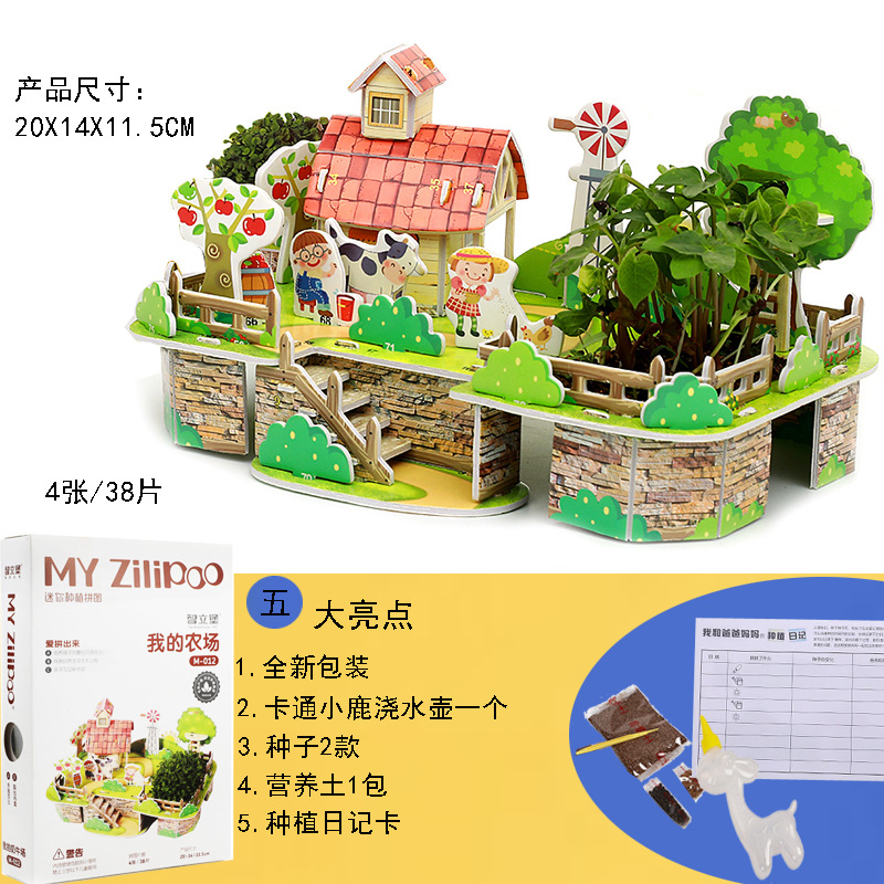 3D 종이 입체 직소 퍼즐 부모-자식 잔디 심기 어린이 수제 DIY 퍼즐 빌딩 모델 조립 장난감