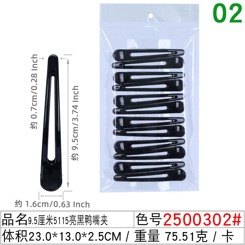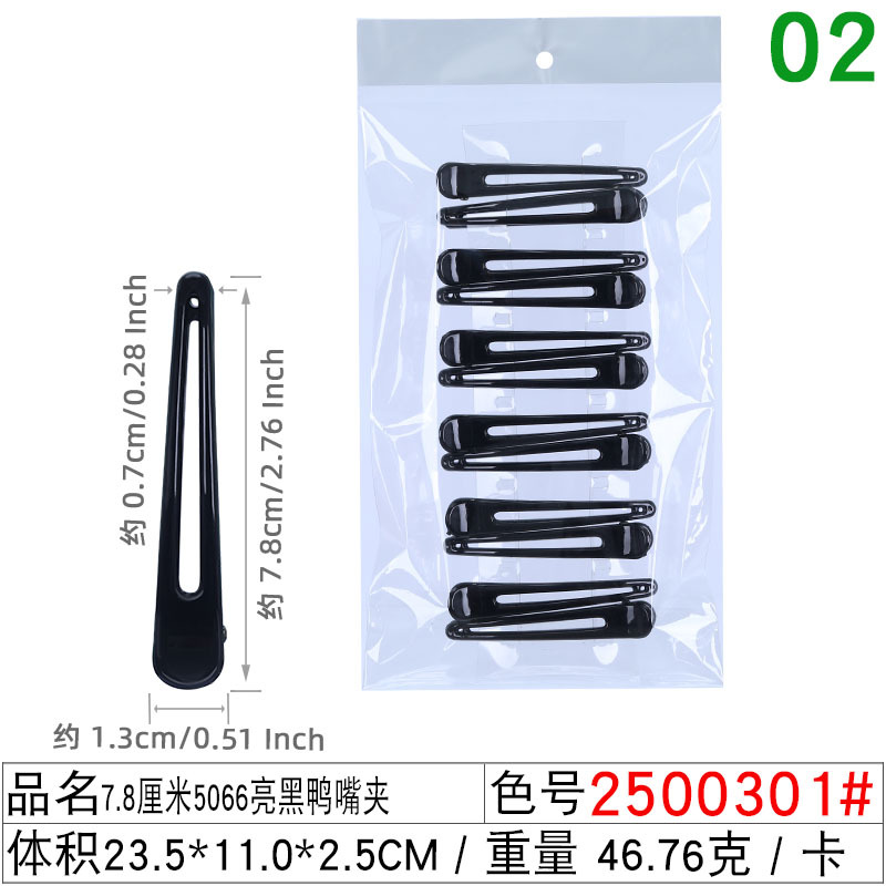 크로스 보더 핫 셀링 대형 및 중형 스몰 사이즈 속이 빈 밝은 블랙 오리 지폐 클립 숙녀 머리 헤어 클립 뾰족한 입 헤어 클립 도매