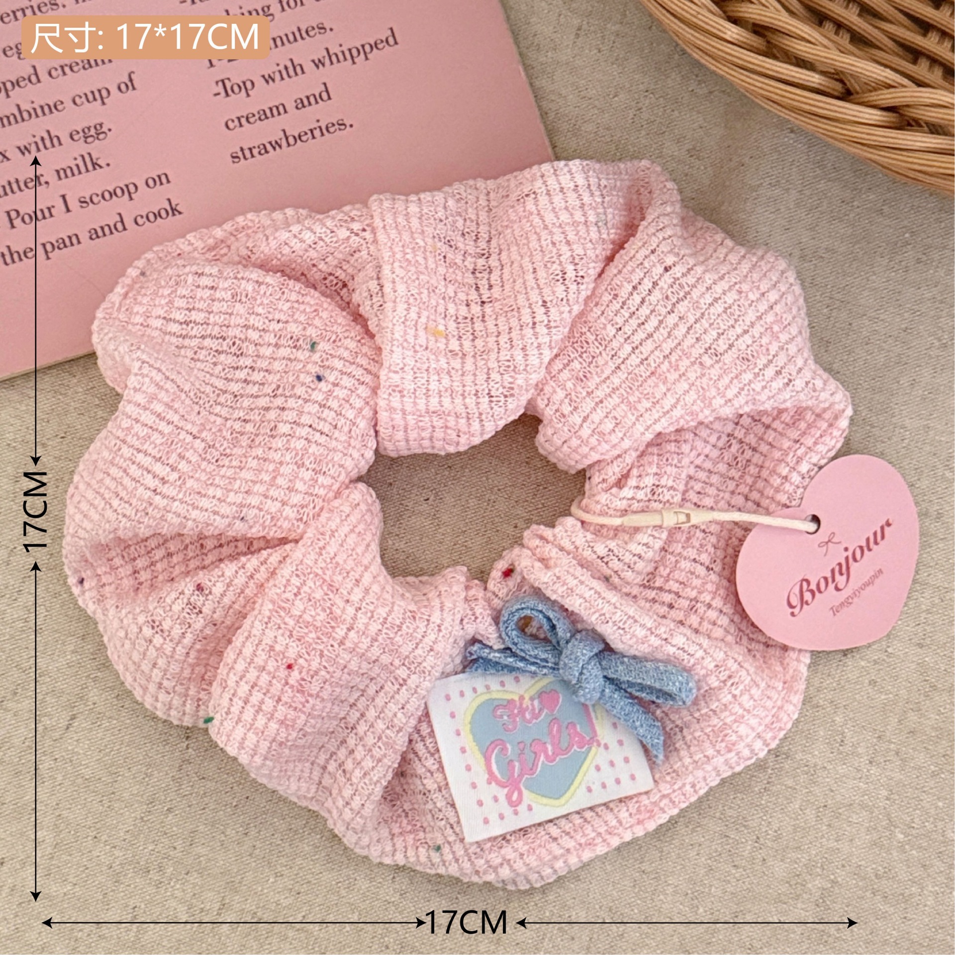 • 2 # 핑크 체크 무늬 리본 머리끈