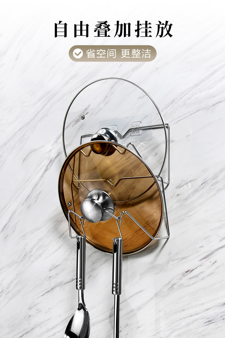 스테인레스 스틸 벽걸이 후크 냄비 뚜껑 랙 천공 다기능 주방 냄비 뚜껑 보관 걸이 도마 랙스토어 가기