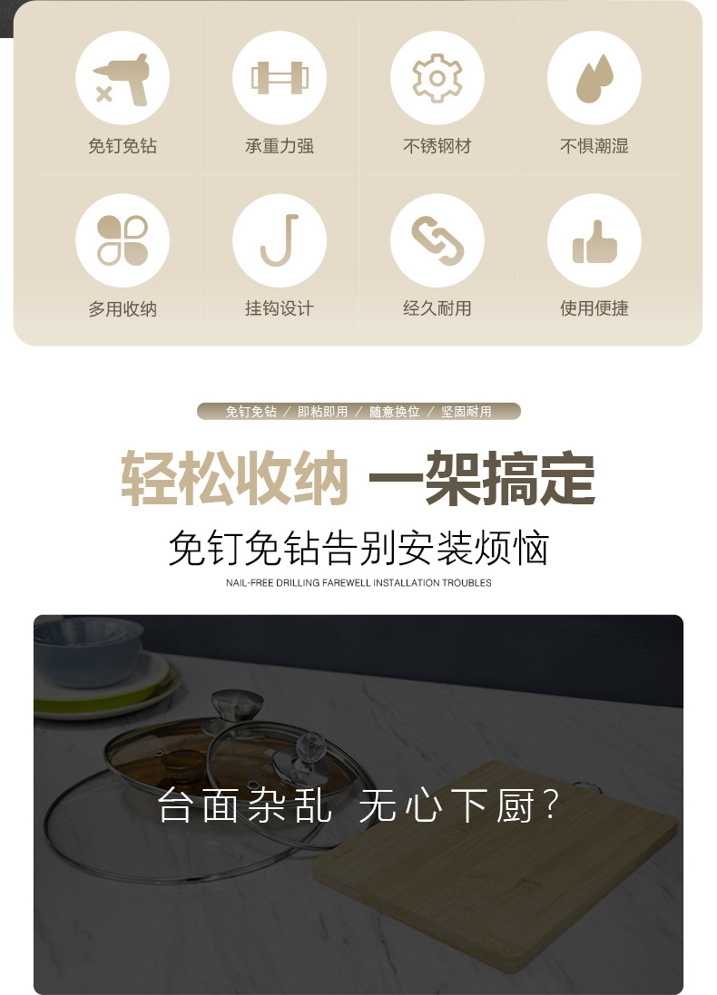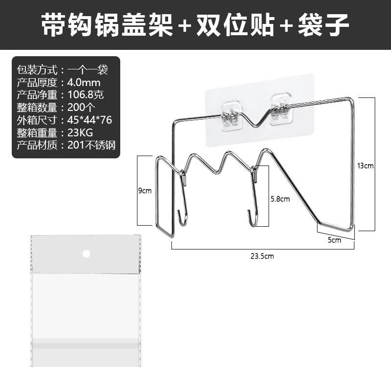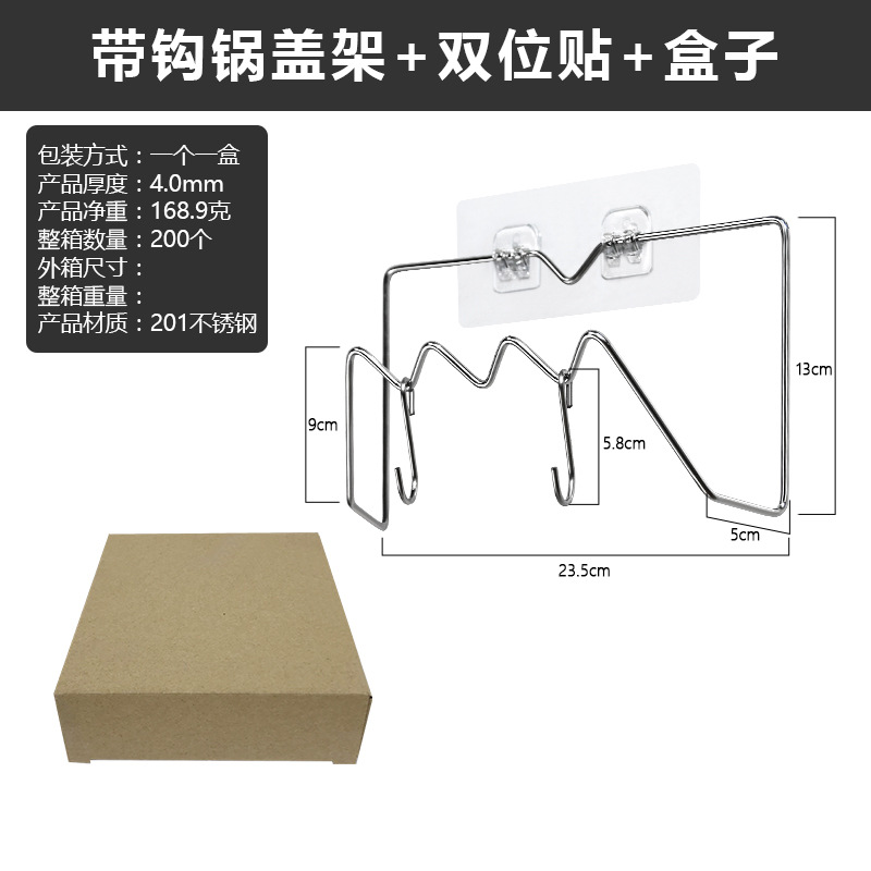 • 후크 + 이중 위치 스티커 + 상자가있는 냄비 커버 랙