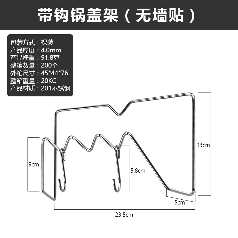 스테인레스 스틸 벽걸이 후크 냄비 뚜껑 랙 천공 다기능 주방 냄비 뚜껑 보관 걸이 도마 랙