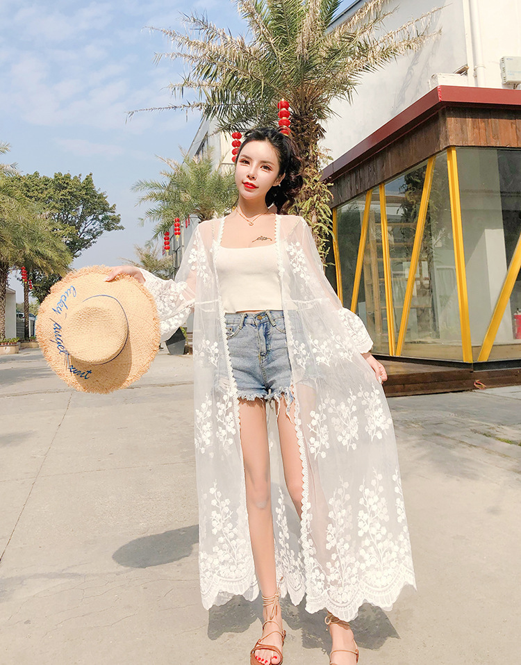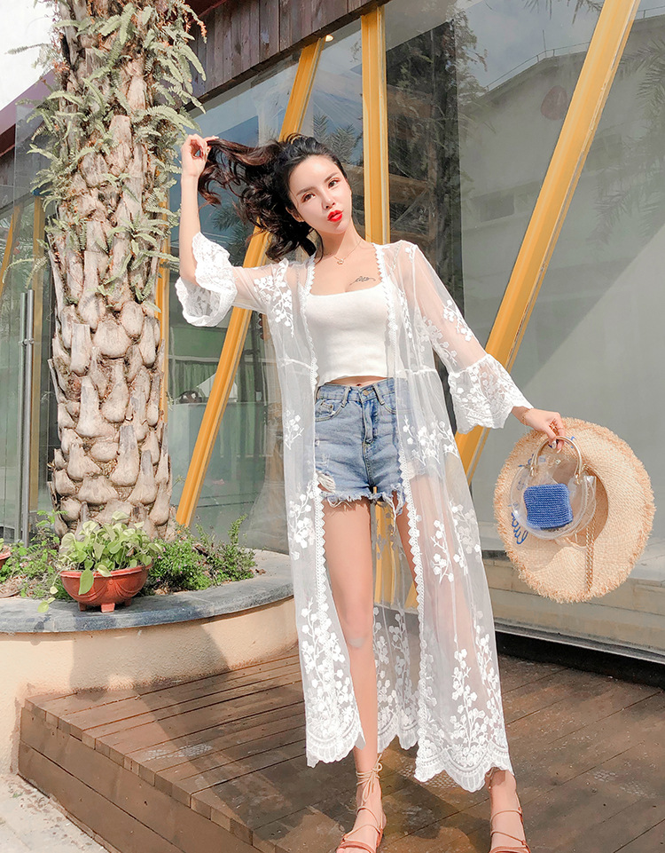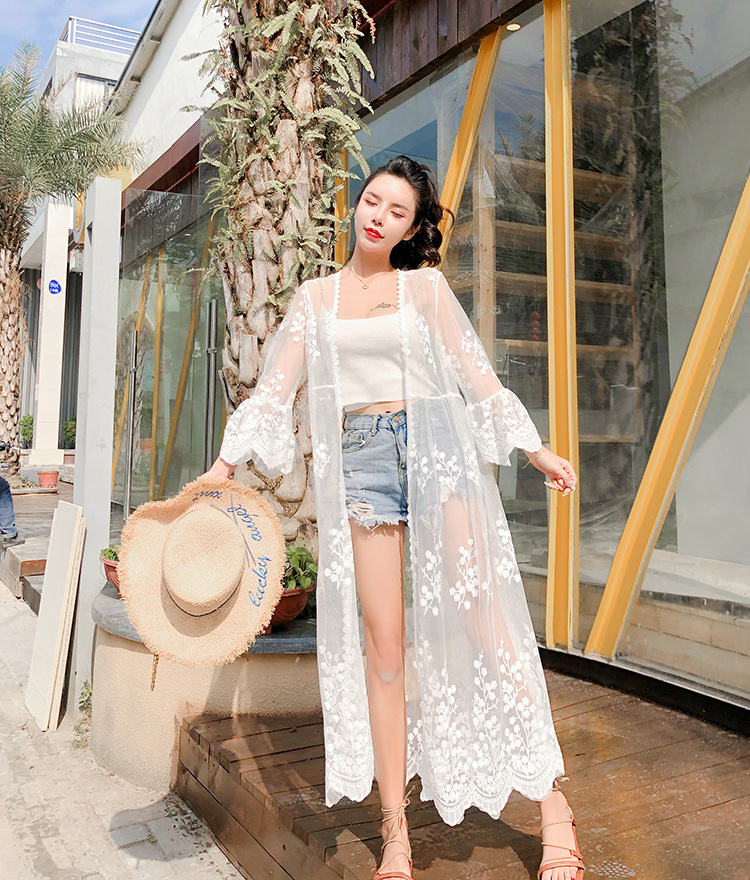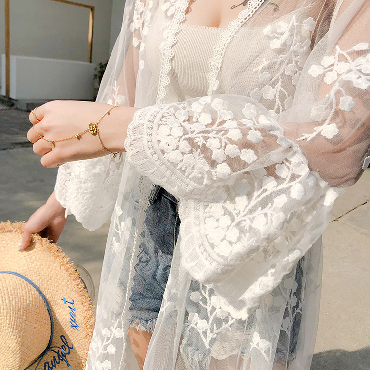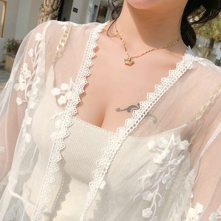 슈퍼 요정 선 스크린 카디건 여성 여름 쉬폰 탑 스트랩 스커트 아우터 착용 작은 목도리 얇은 코트