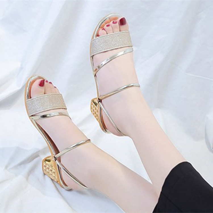 크로스 보더 투웨어 샌들 여학생 2023 두꺼운 힐 슬리퍼가있는 여름 새로운 캐주얼 하이힐 도매