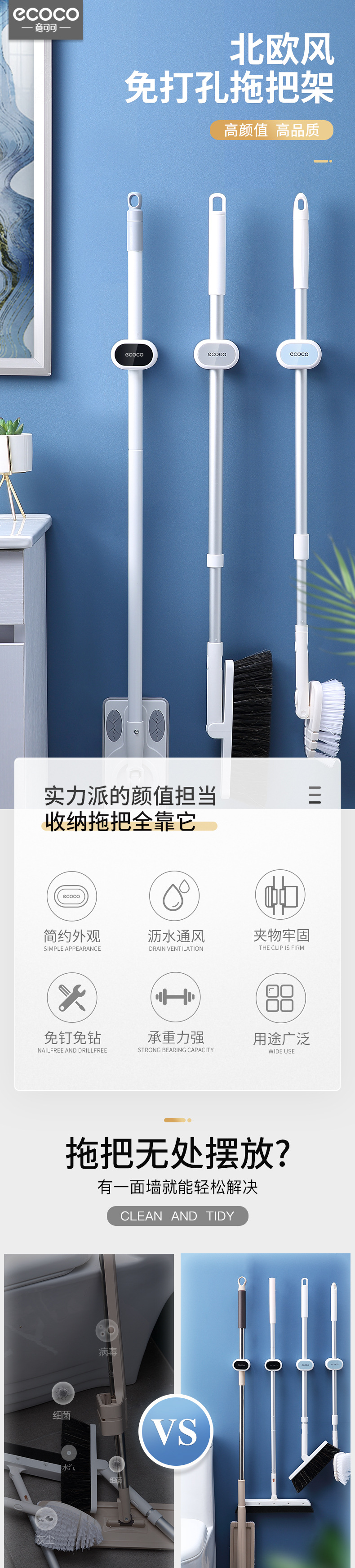 이탈리아 코코 걸레 랙 펀치 없는 벽걸이 화장실 걸레 보관 랙 비스코스 강한 고정 버클 빗자루 클립스토어 가기