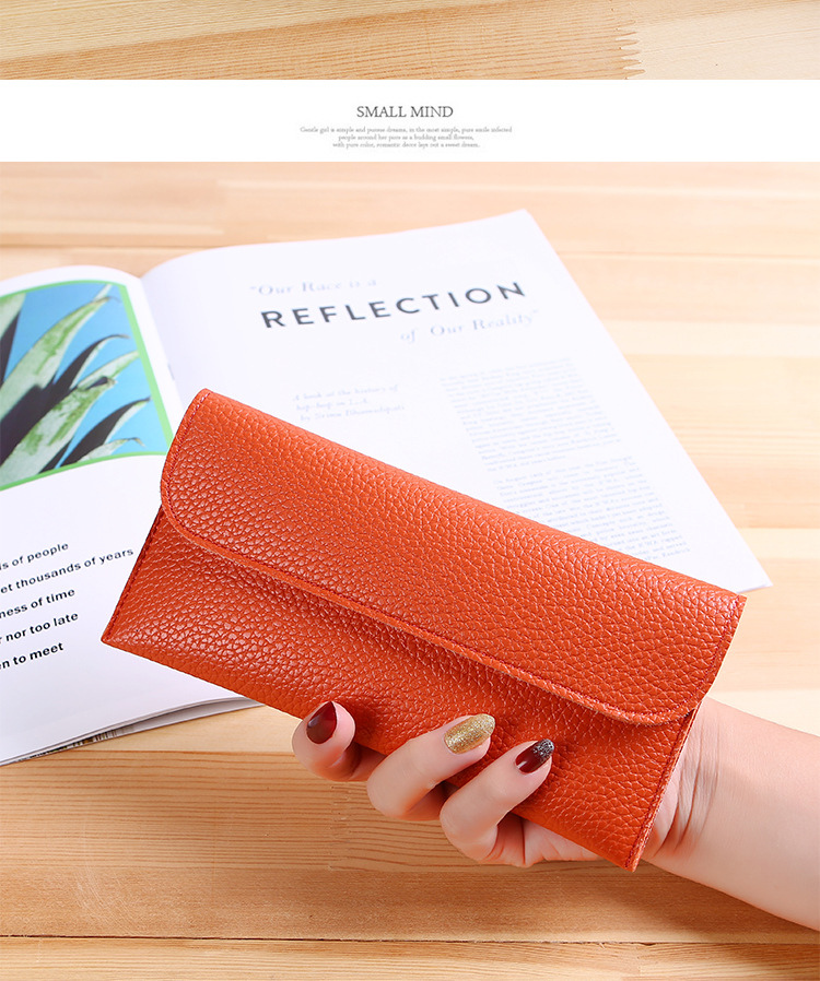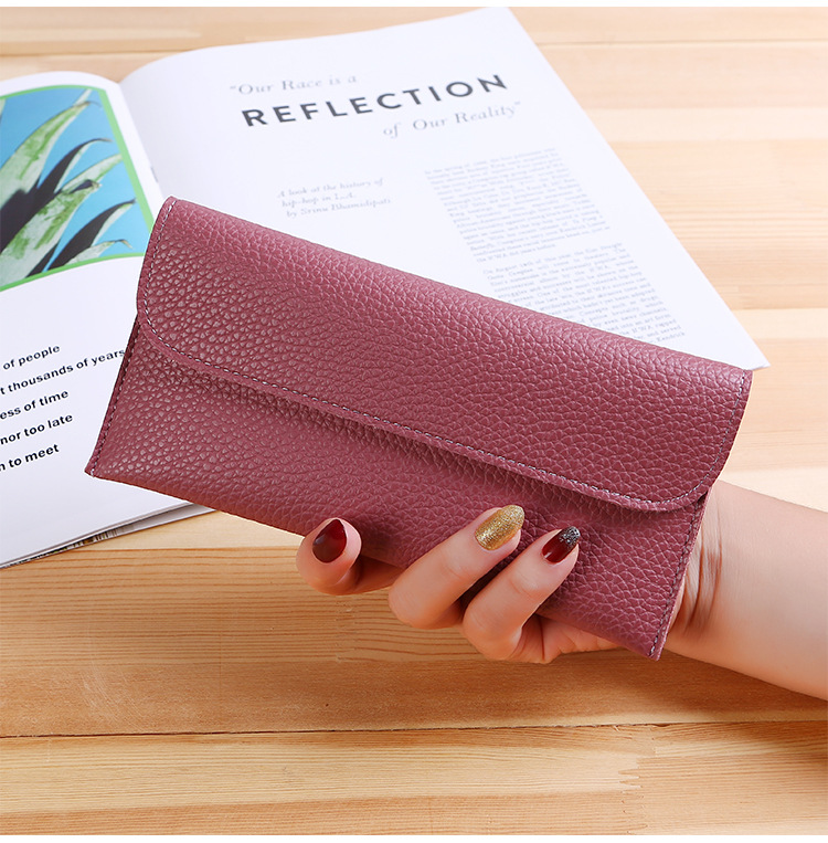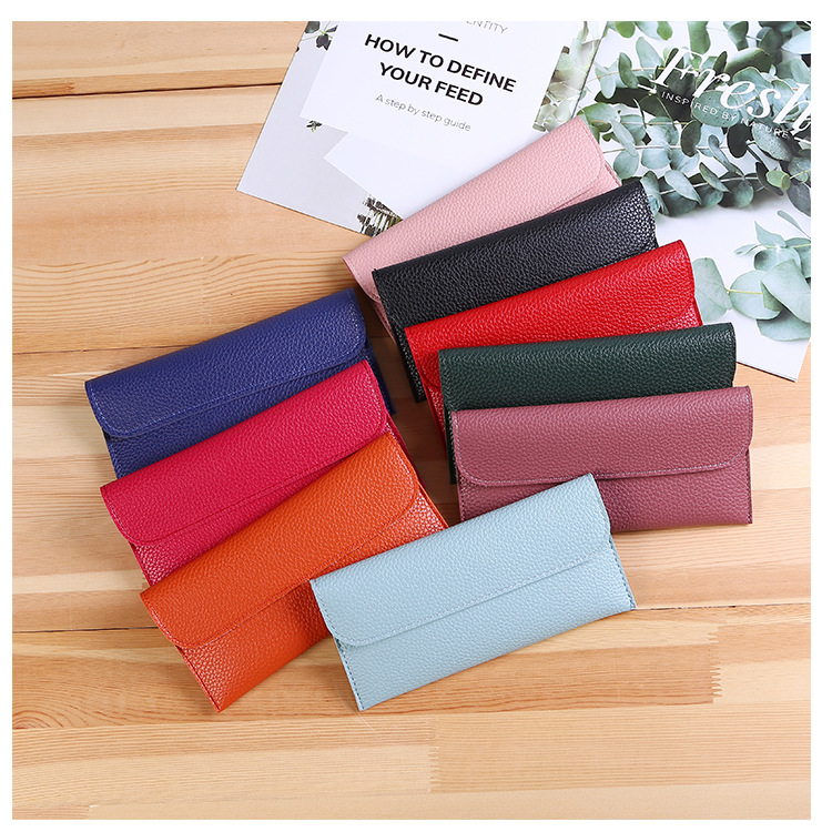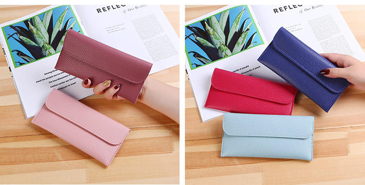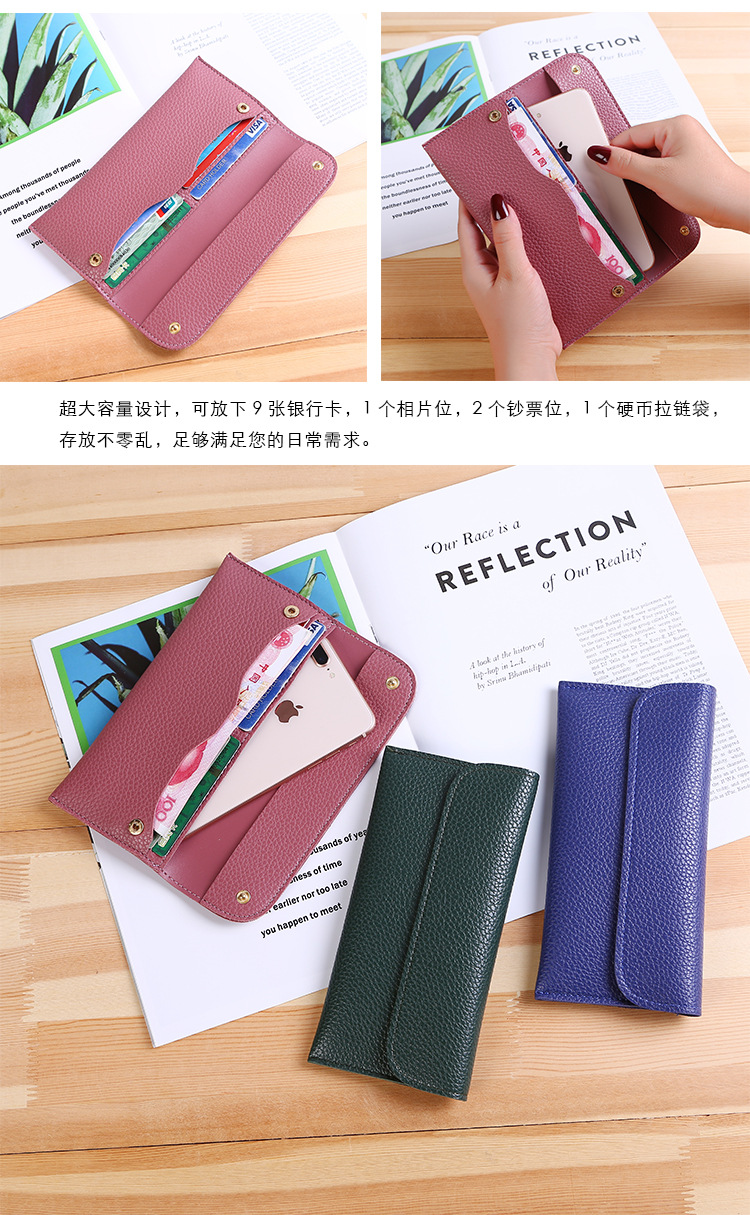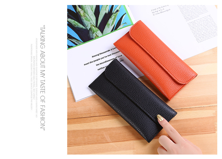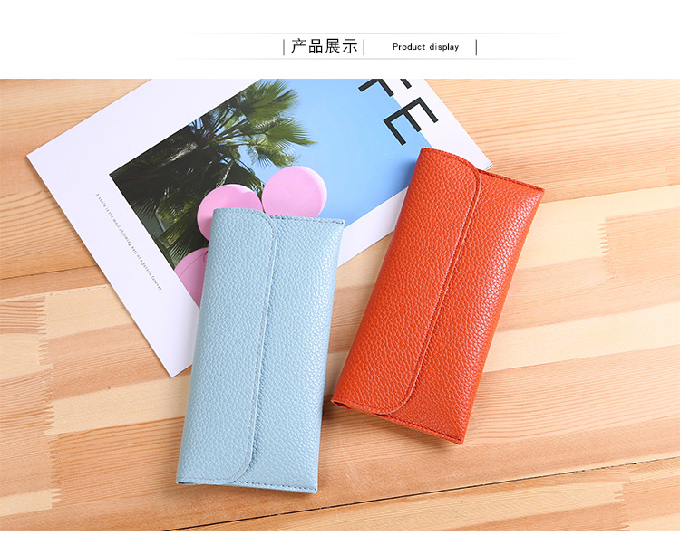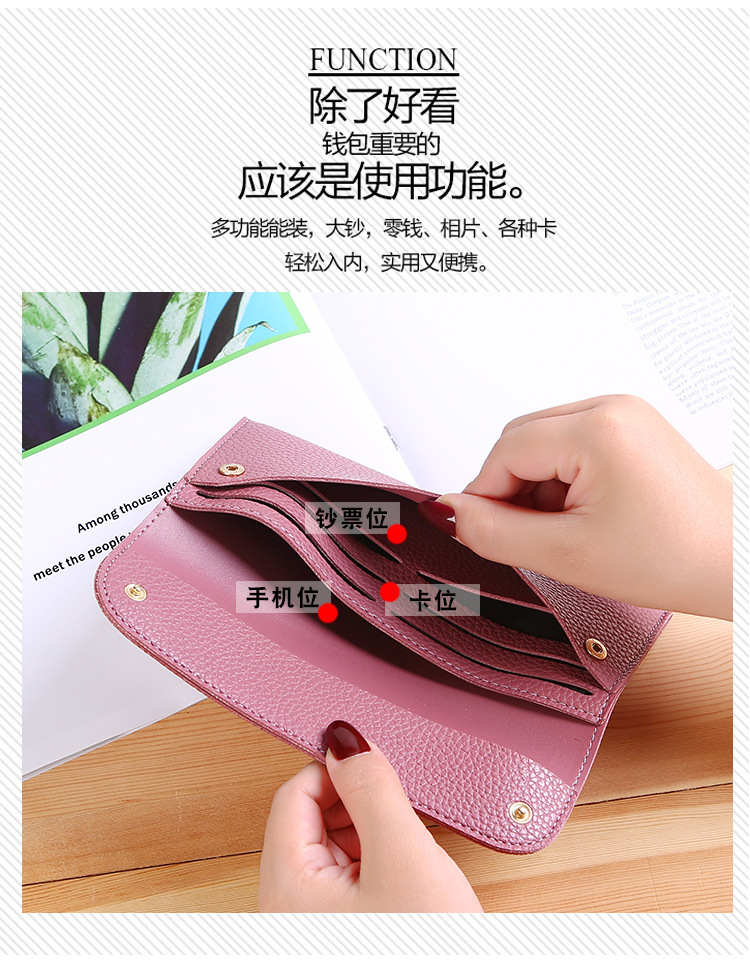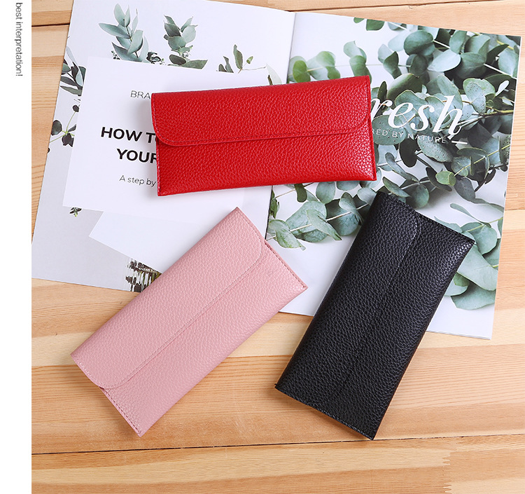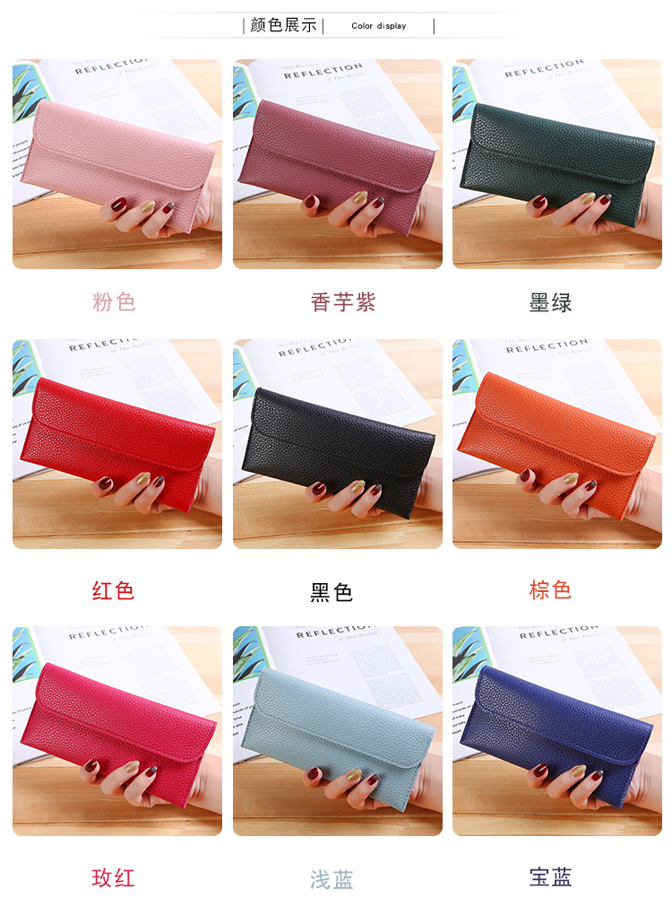 新款软皮薄款日韩版女士钱包长款大容量纯色荔枝纹手机包钱包女包