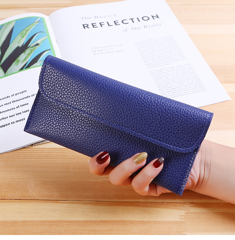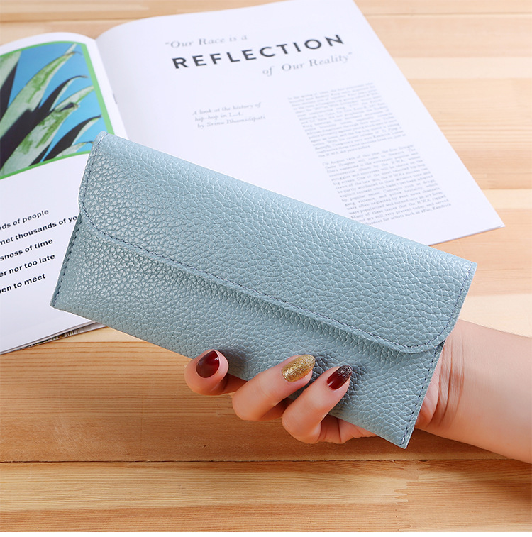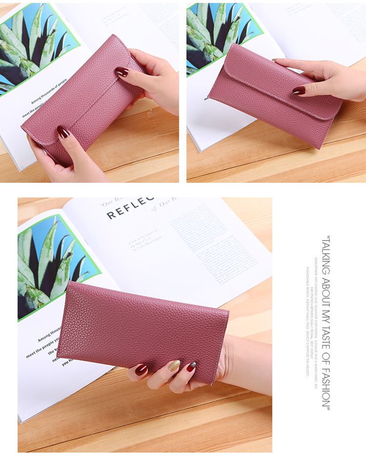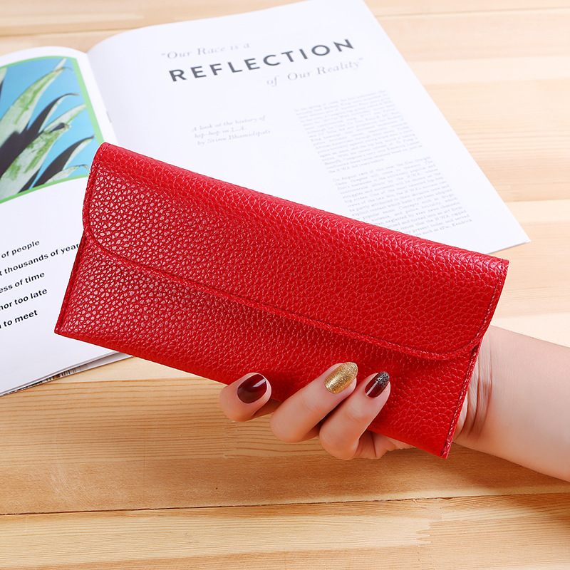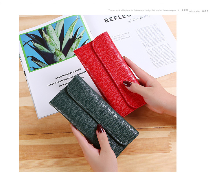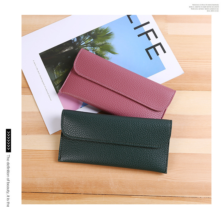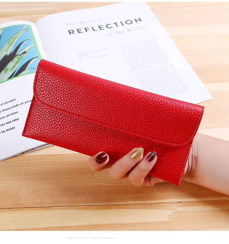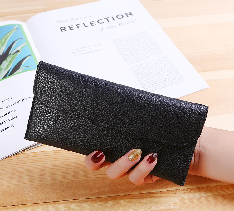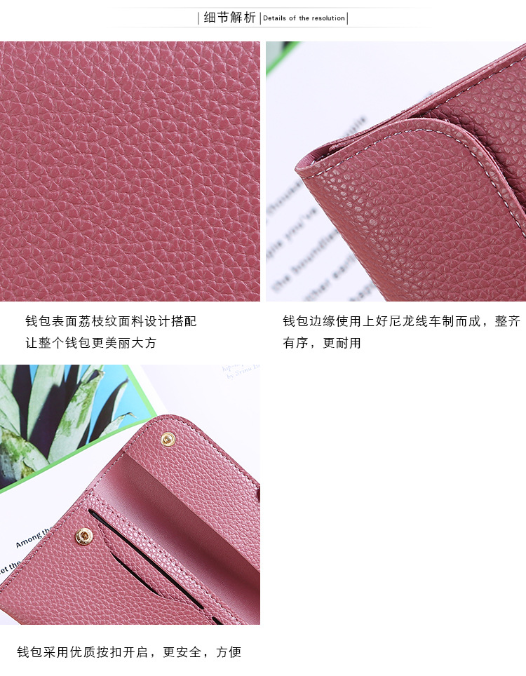 新款软皮薄款日韩版女士钱包长款大容量纯色荔枝纹手机包钱包女包