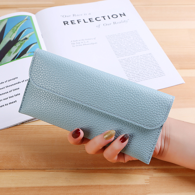 새로운 스타일의 부드러운 가죽 얇은 일본 및 한국 스타일 여성 지갑, 긴 모델, 대용량, 단색, 리치 패턴, 휴대폰 가방, 여성 가방, 휴대용스토어 가기