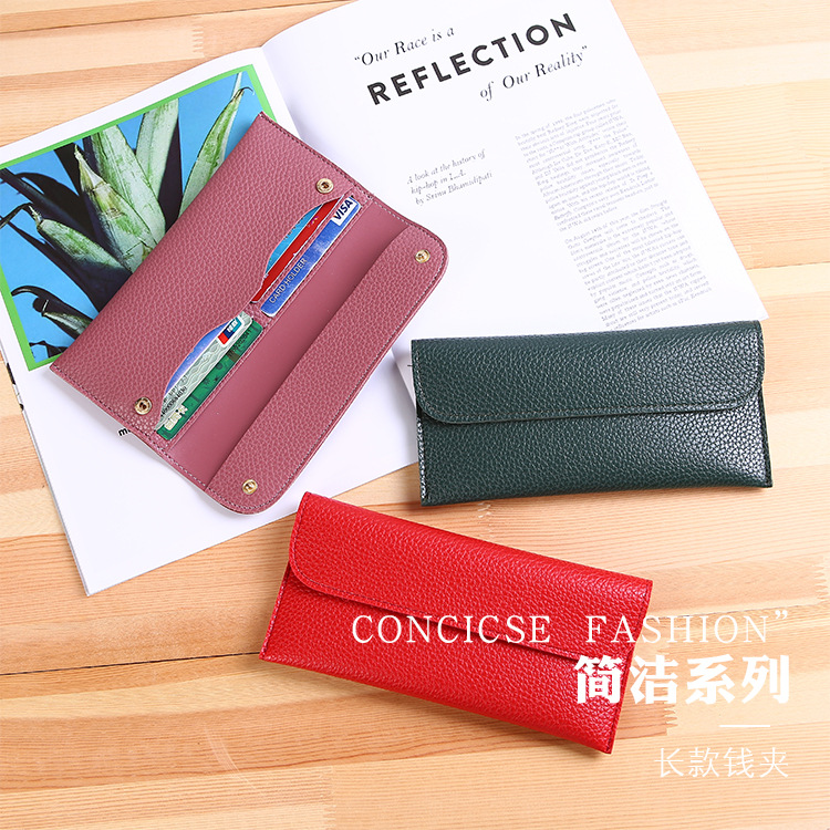 새로운 스타일의 부드러운 가죽 얇은 일본 및 한국 스타일 여성 지갑, 긴 모델, 대용량, 단색, 리치 패턴, 휴대폰 가방, 여성 가방, 휴대용