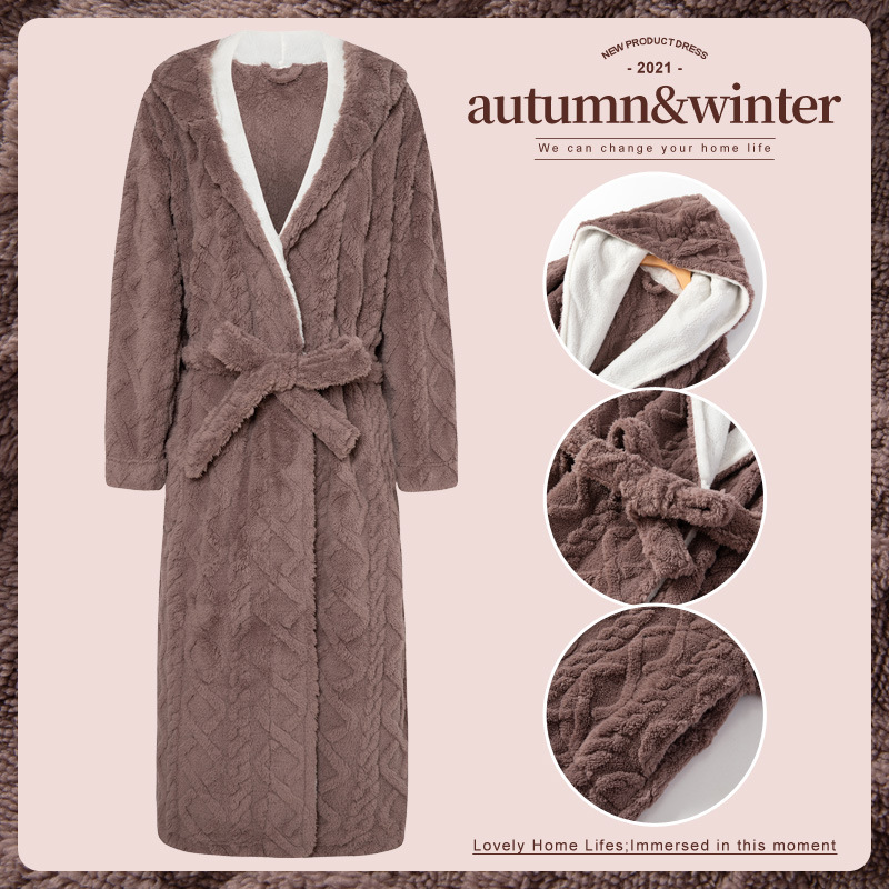 가을과 겨울 산호 양털 커플의 잠옷 남자의 플란넬 목욕 가운 잠옷 연장 여자의 겨울 기모