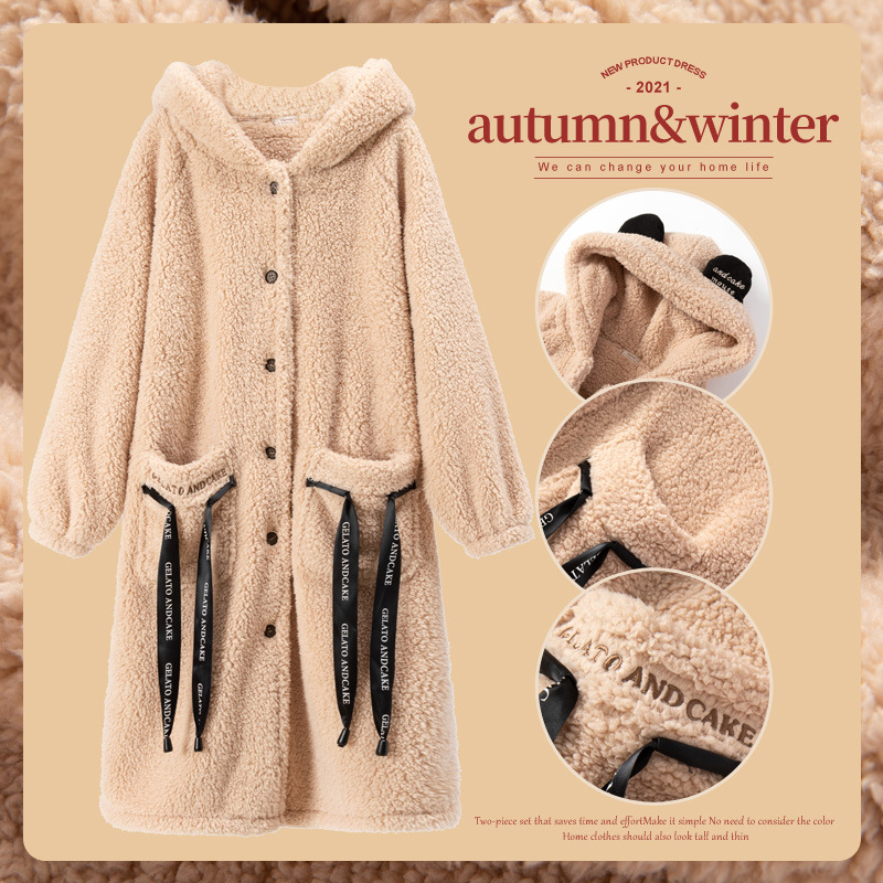 가을과 겨울 산호 양털 커플의 잠옷 남자의 플란넬 목욕 가운 잠옷 연장 여자의 겨울 기모스토어 가기