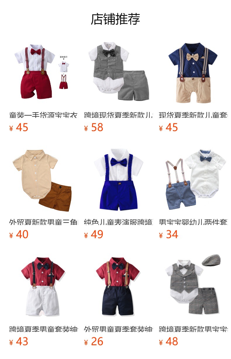 신생아 유아 원피스 해티 1 세 소년 반바지 가짜 조끼 셔츠 재고 여름 새 옷스토어 가기