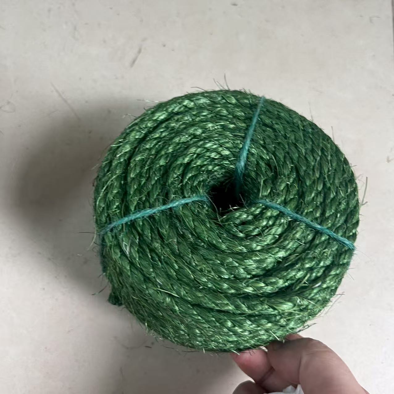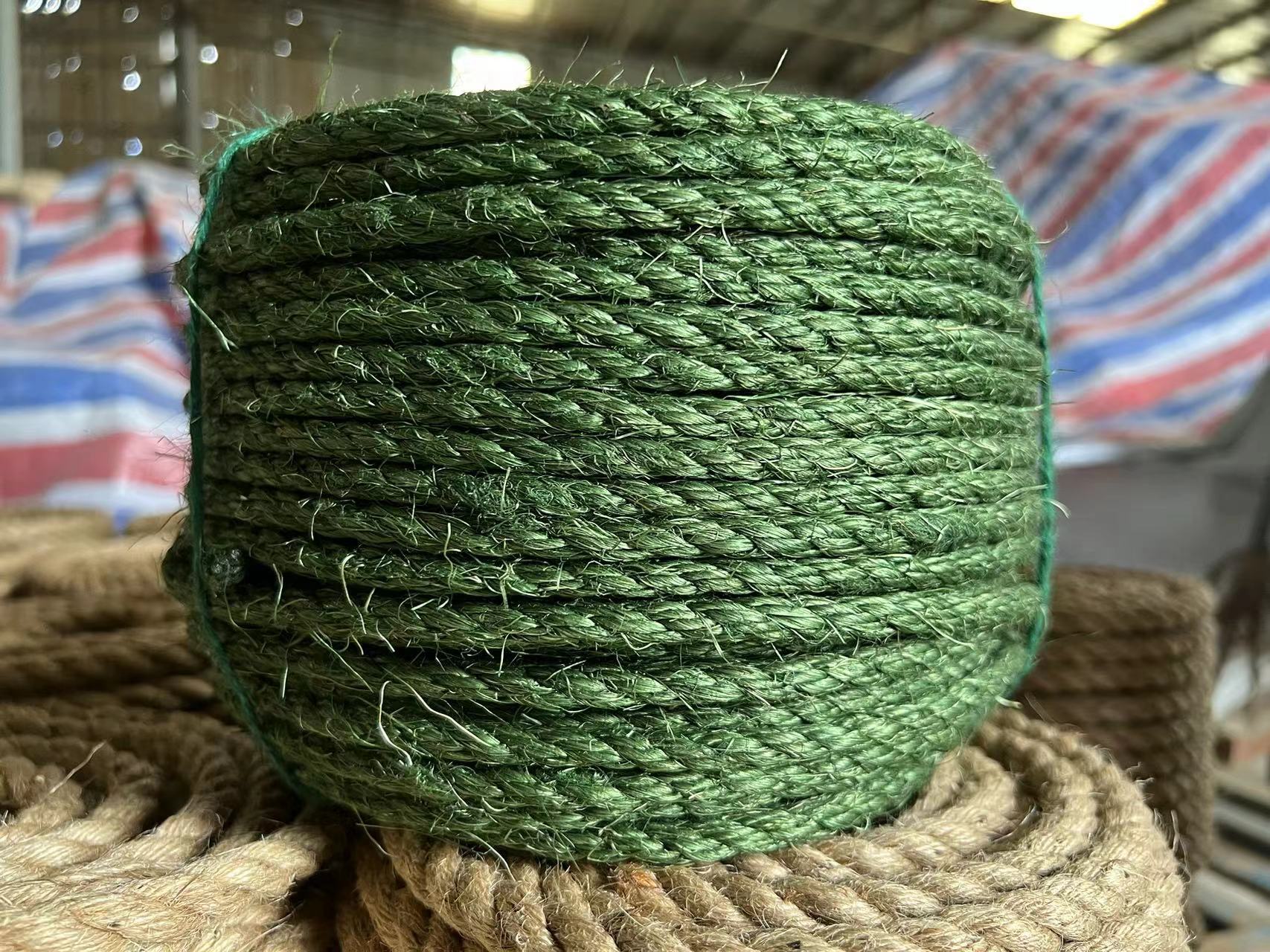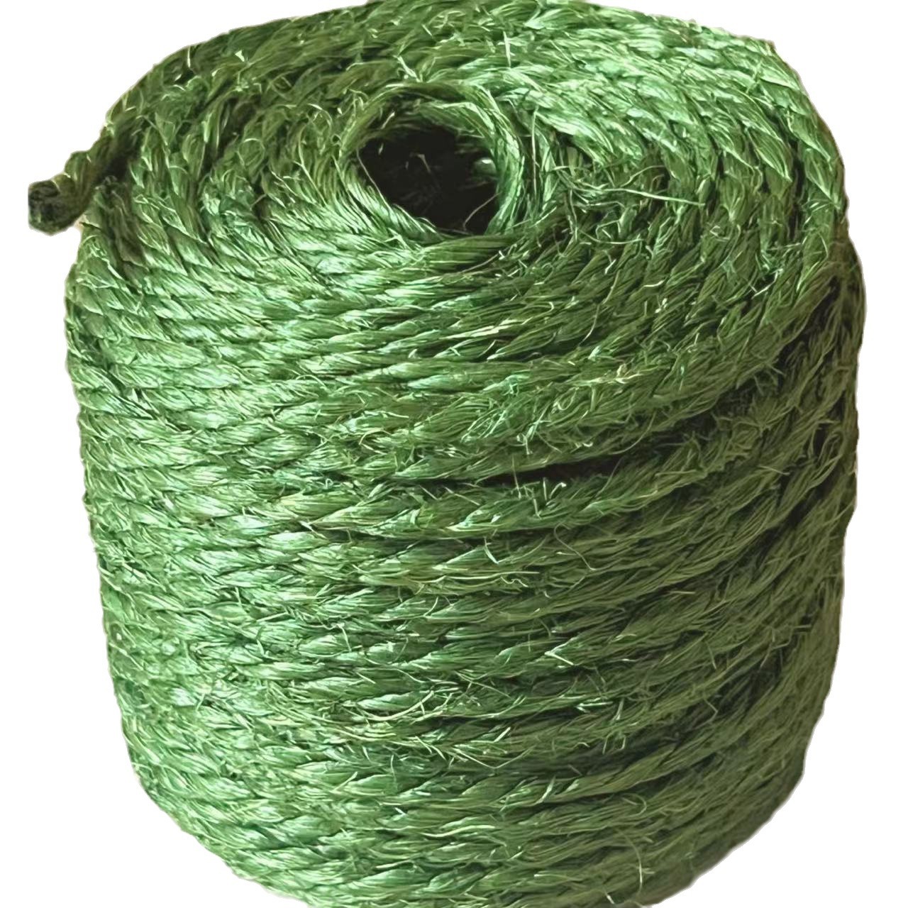 此款剑麻绳染色绿色--纤维染色不掉色,也是没有怪怪的气味,如果大量需要按重量计价,一件大概38公斤左右,一件的单价按29元每公斤,两件-10件单价28元每公斤。两吨以上预订27元每公斤。绿色4MM今年有现货了,100米起拍。3股纱合成,已上图。