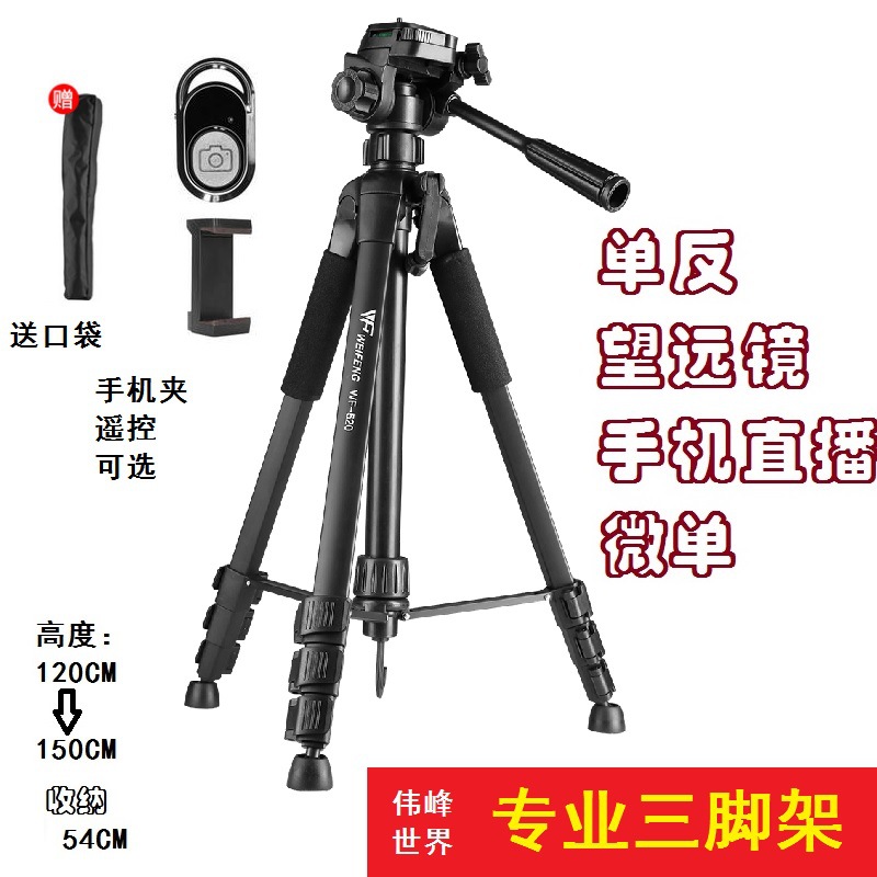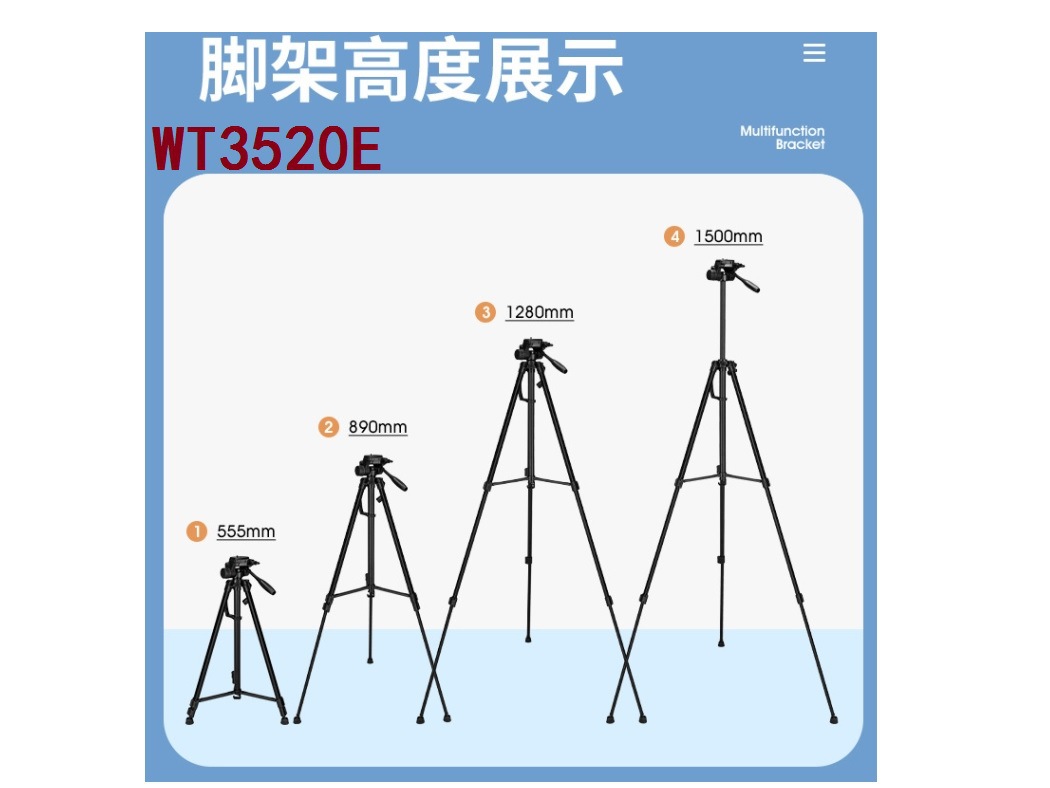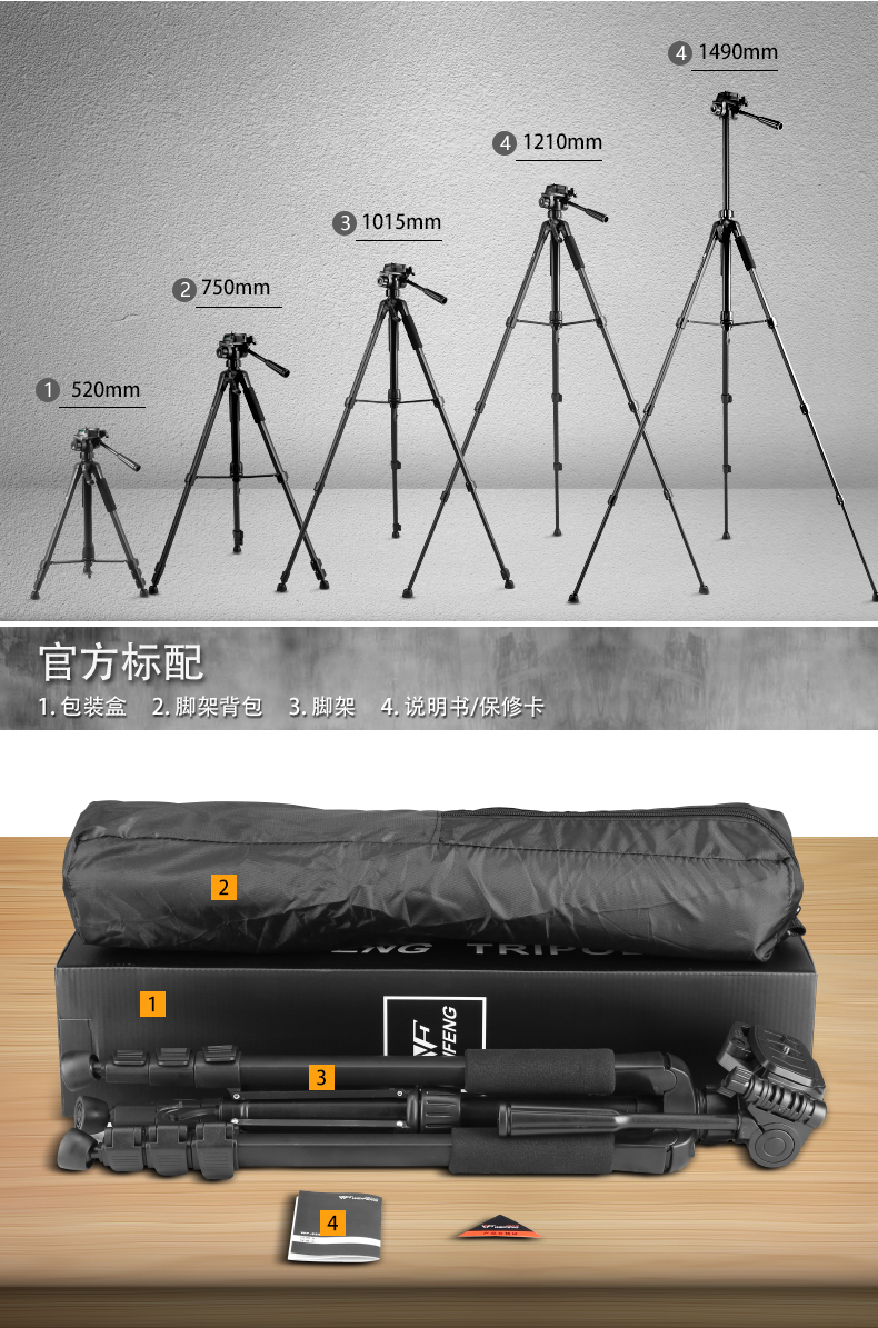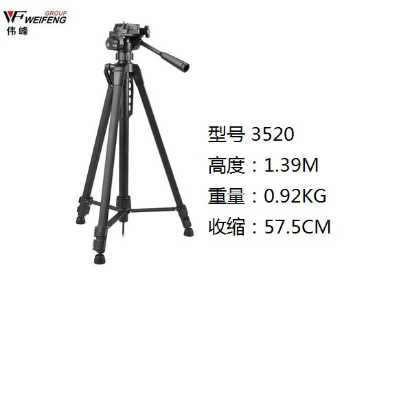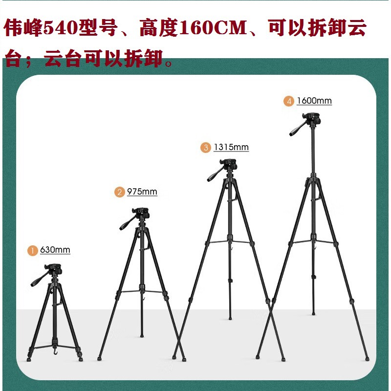 伟峰520型号高度1.5米,结实稳定。540高度160CM,云台可以拆卸,更高一点,结构雷同。