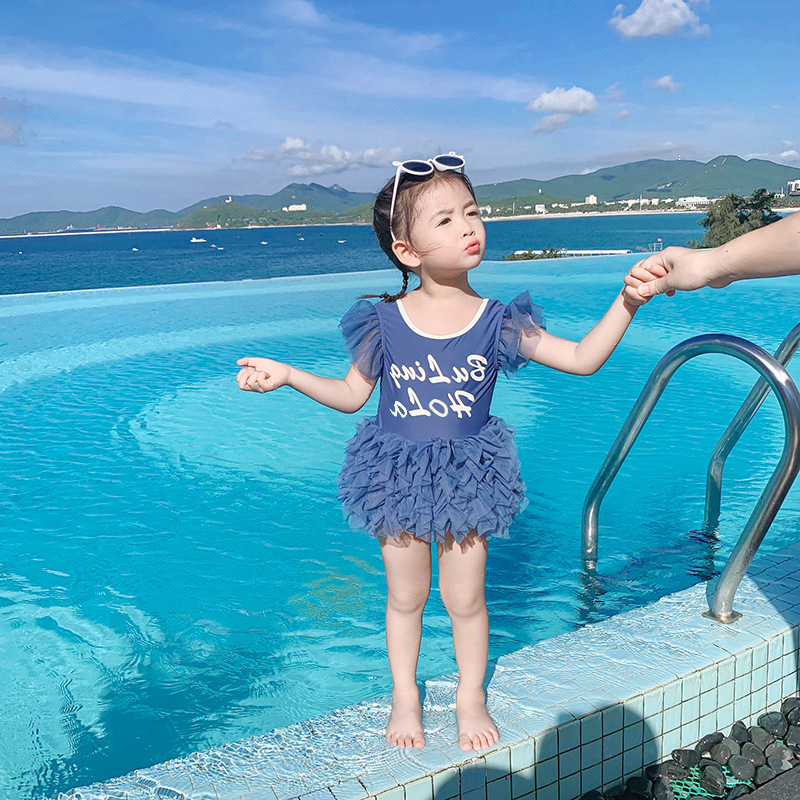 2024 여름 한국 스타일 어린이 레이스 공주 수영복 아기 세련된 소녀 삼각형 스타일 어린 소녀를위한 수영 세트스토어 가기
