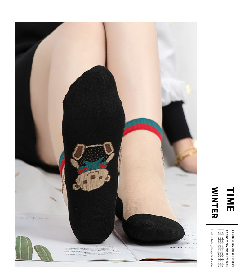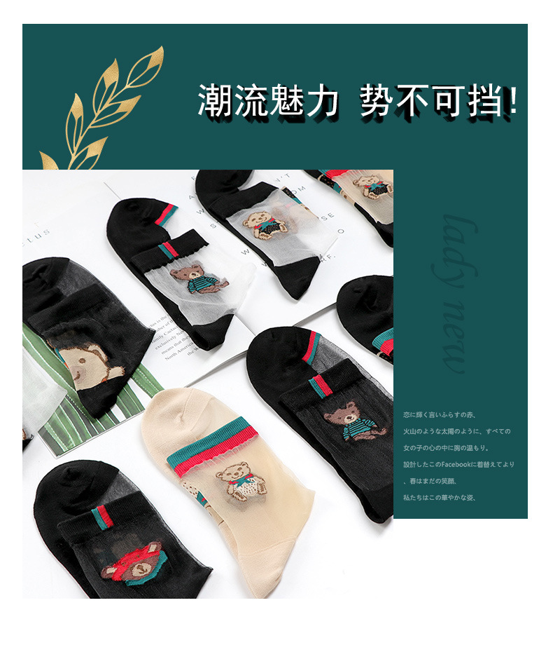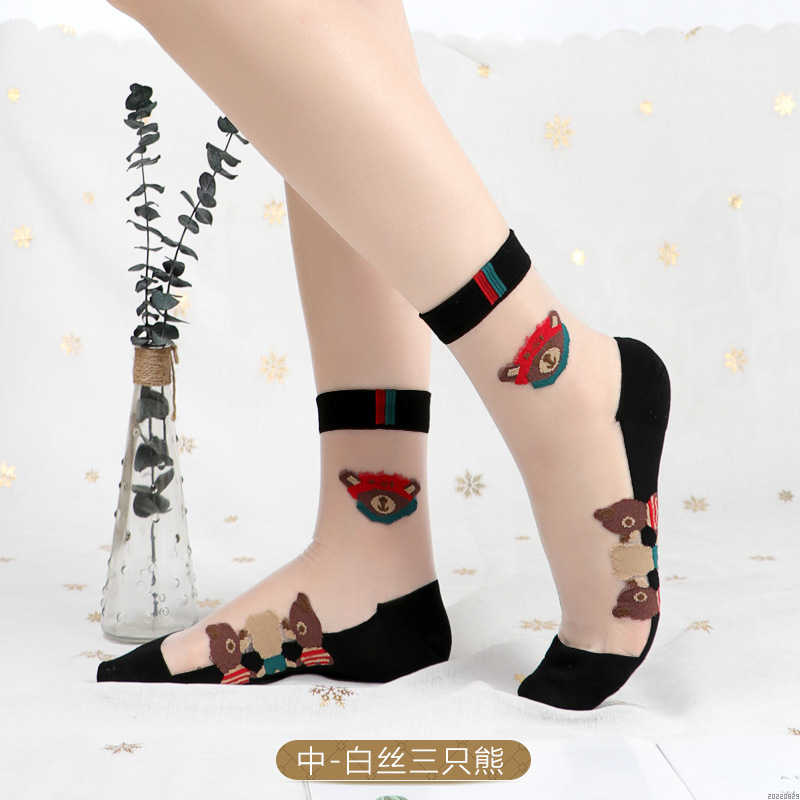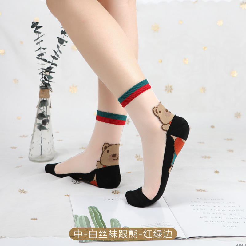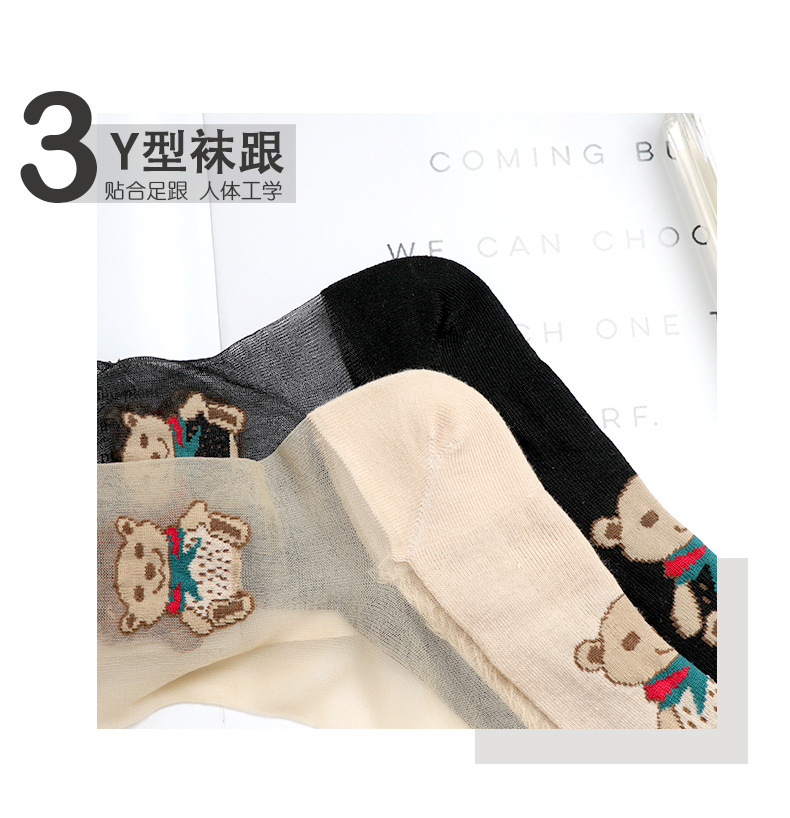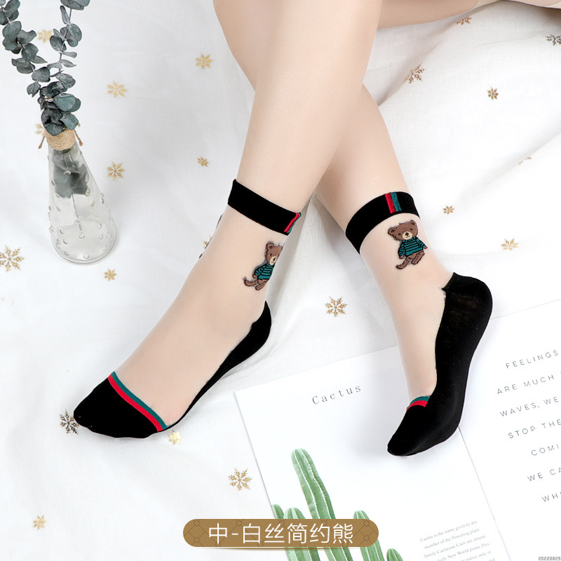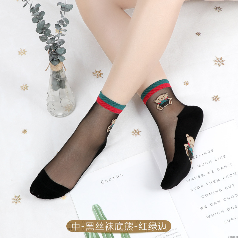 • [중간 실린더] 검은 바닥 고기 실크 양말 바닥 곰