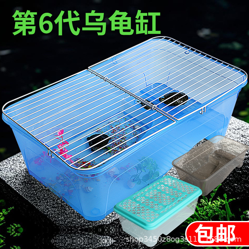 바구니 먹이 상자가있는 거북이 탱크 대형 소형 어항 빌라 가정용 플라스틱 특수 탱크 거북이 풍경 거북이 분지스토어 가기