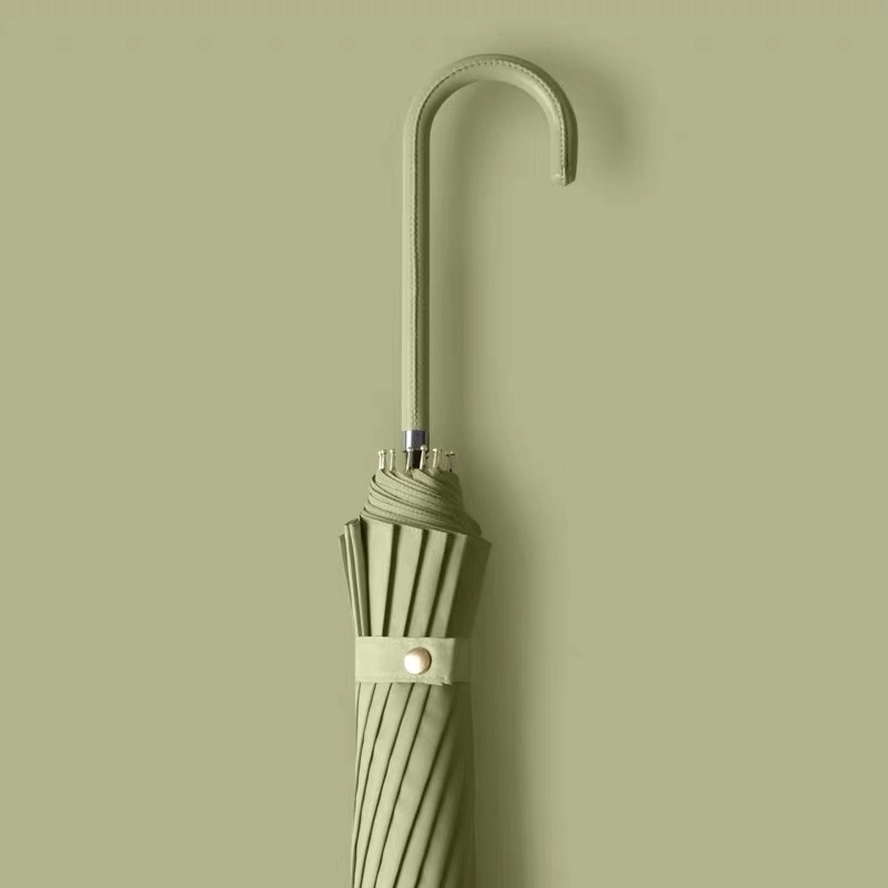 일본식 긴 손잡이 우산, 인스 스타일 여성용 대형 방풍 우산, 비와 햇빛 모두 사용 가능, 16개의 뼈, 자동 벤딩 후크 우산, 맞춤형 로고