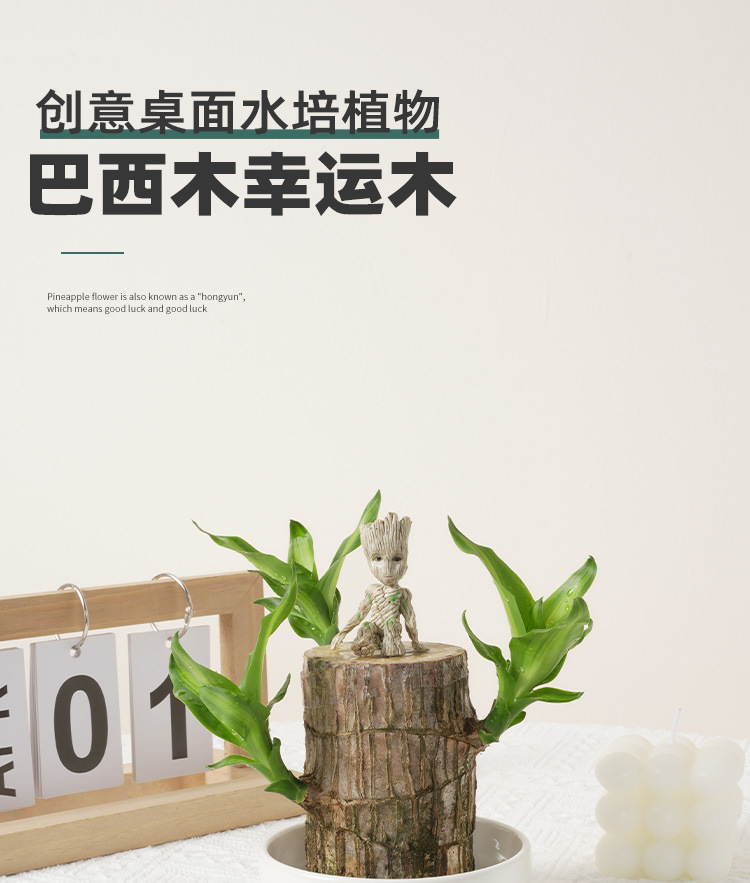 브라질 나무 물 기르기 사계절 행운의 나무 그라우트 녹색 식물 꽃 봉오리 실내 수경 좋은 식물을 가진 작은 나무 남자 화분