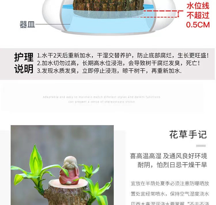 • 세트 : 브라질 나무 [직경 5-6 * 높이 10cm] + 플라스틱 연잎 대야 + 대머리 작은 스님