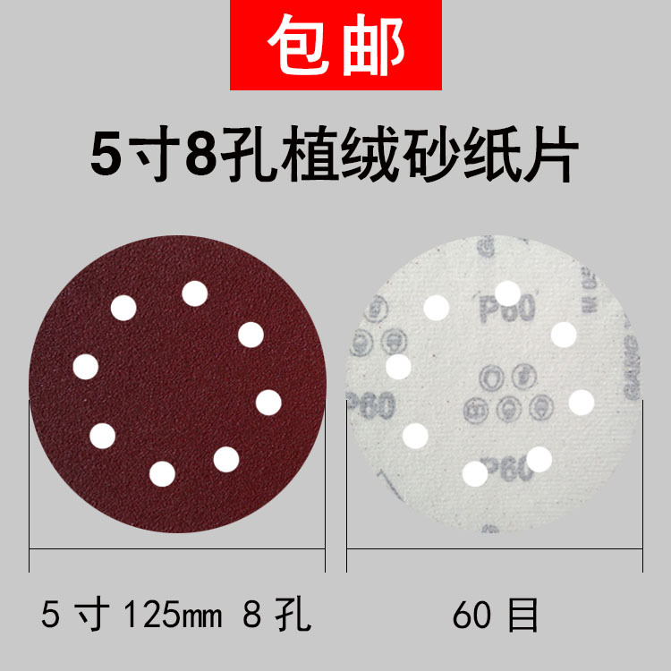 | 8孔植绒砂纸片 | 125mm 5寸 | 钢鹰砂纸 | 40#-2000# | 100片/盒,3000片/箱 |